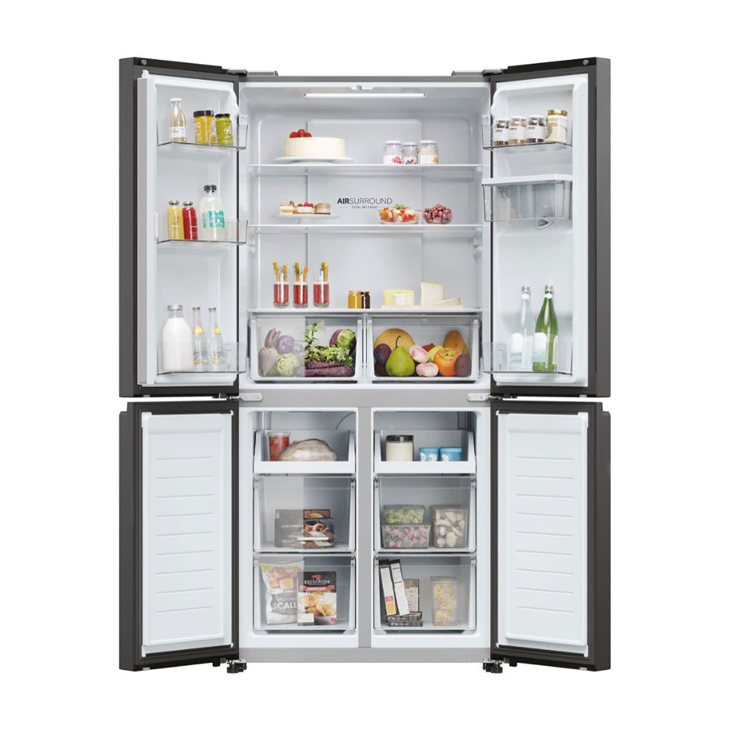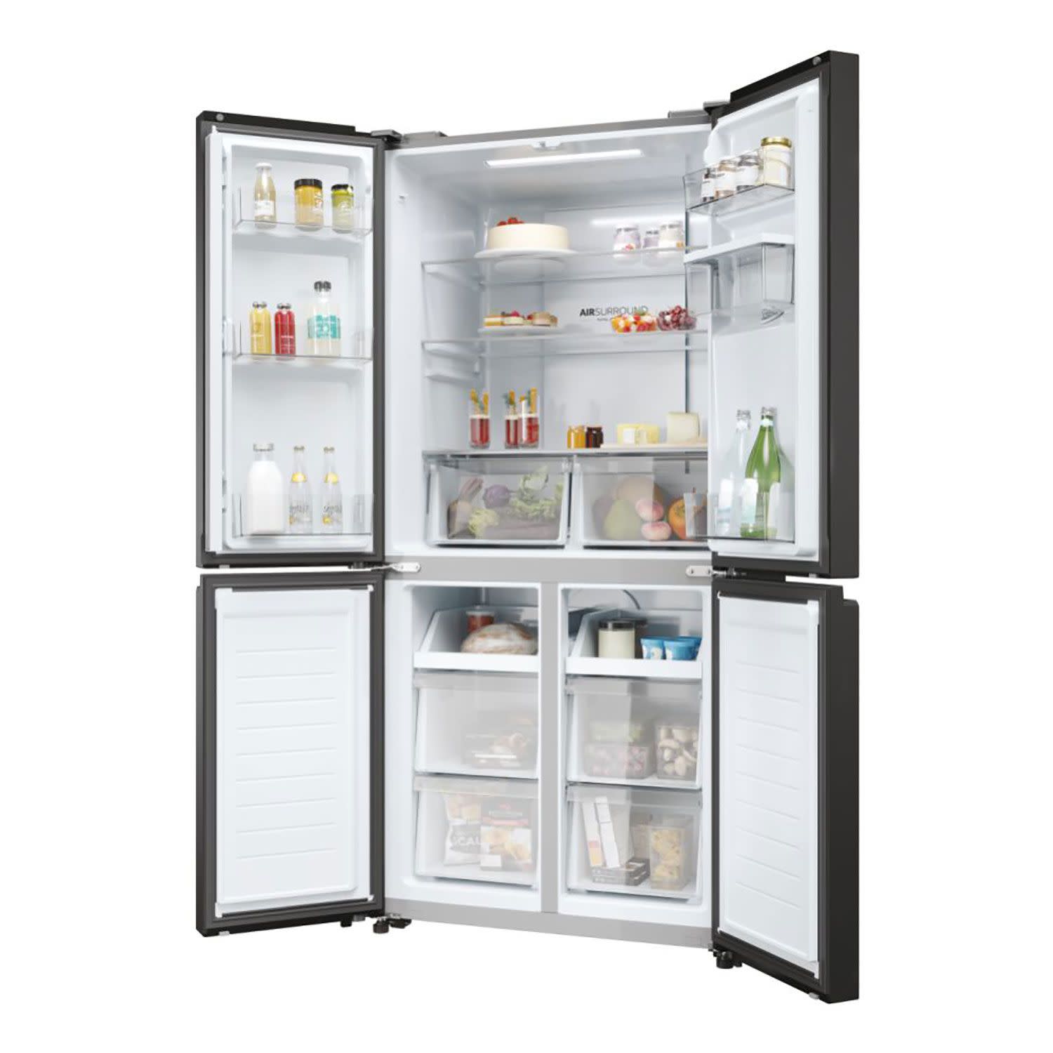 Με την τεχνολογία Air Surround της Haier, ο αέρας ρέει γύρω από το ψυγείο με πιο ήπιο και απαλό τρόπο από ειδικούς πλευρικούς αεραγωγούς, κατανέμοντας ομοιογενώς τον κρύο αέρα που αγκαλιάζει τα τρόφιμα σε ολόκληρο τον θάλαμο του ψυγείου, χωρίς να βάλλει απευθείας τρόφιμα και να τα αφυδατώνει, όπως συμβαίνει στα συμβατικά ψυγεία.