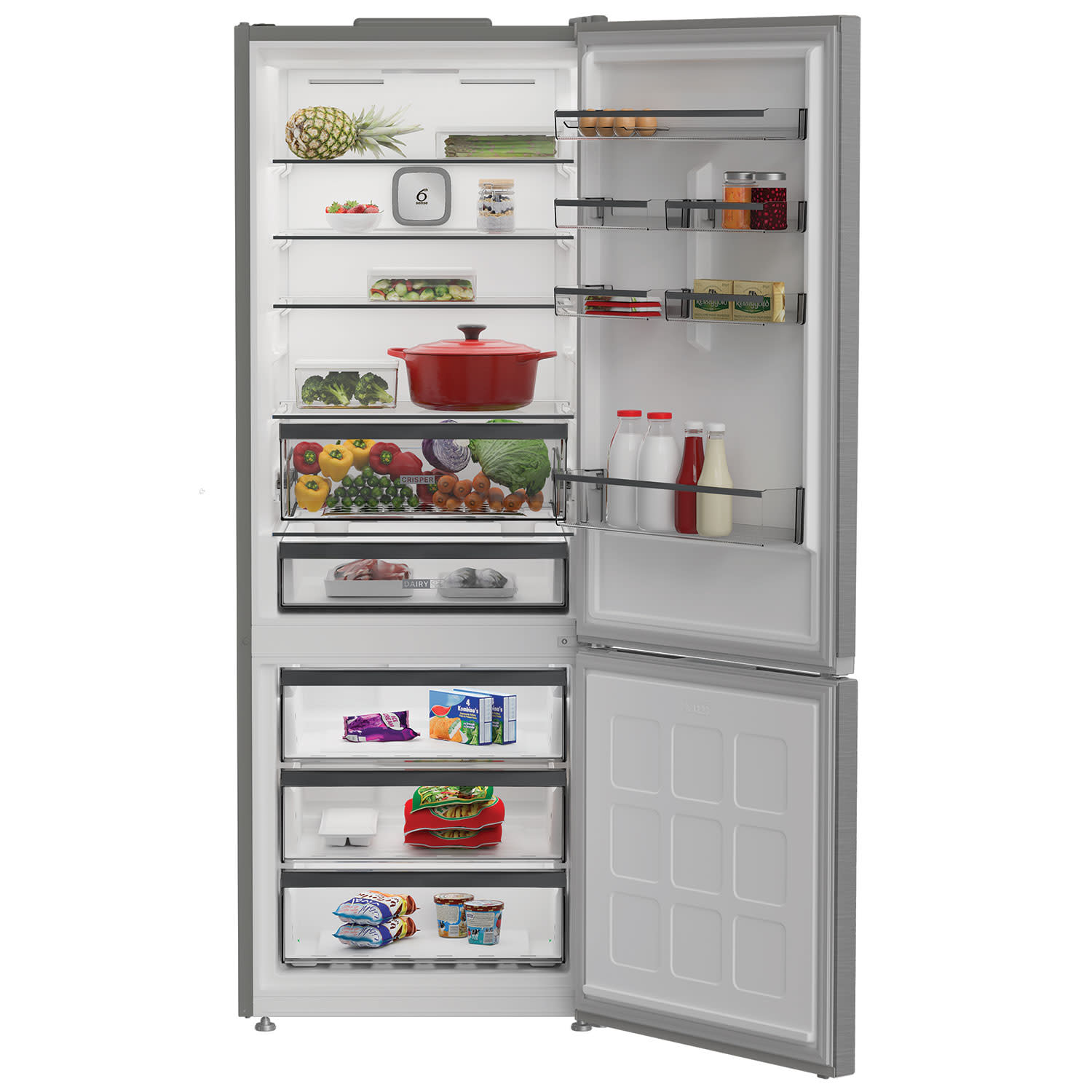Οι αισθητήρες της τεχνολογίας 6th Sense ανιχνεύουν τις συνθήκες που επικρατούν στους δύο θαλάμους και ρυθμίζουν αυτόματα τη θερμοκρασία, αλλά και τα επίπεδα υγρασίας. Τα τρόφιμά σου διατηρούν τη σύσταση και τη γεύση, για να απολαμβάνεις όλη τη φρεσκάδα σε κάθε μπουκιά!