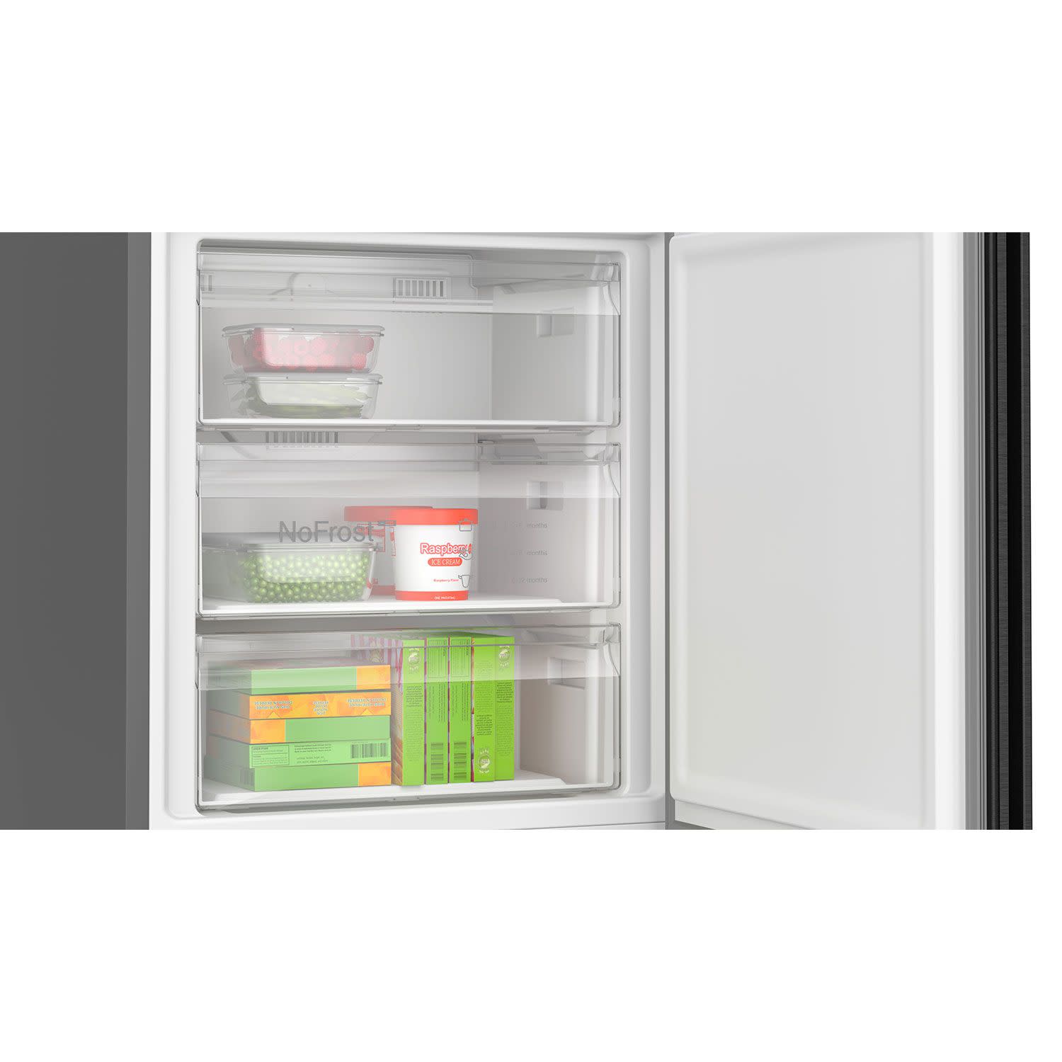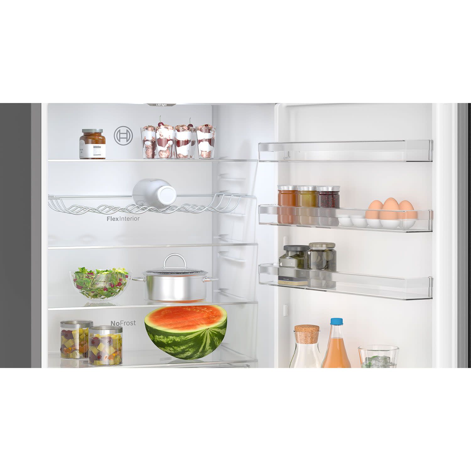 Bosch ψυγειοκαταψύκτης καθαρής χωρητικότητας 440Lt, με σύστημα VitaFresh XXL για δυνατότητα ελέγχου υγρασίας και σύστημα SuperCooling για άμεση ανταπόκριση στη ψύξη των νέων προϊόντων.