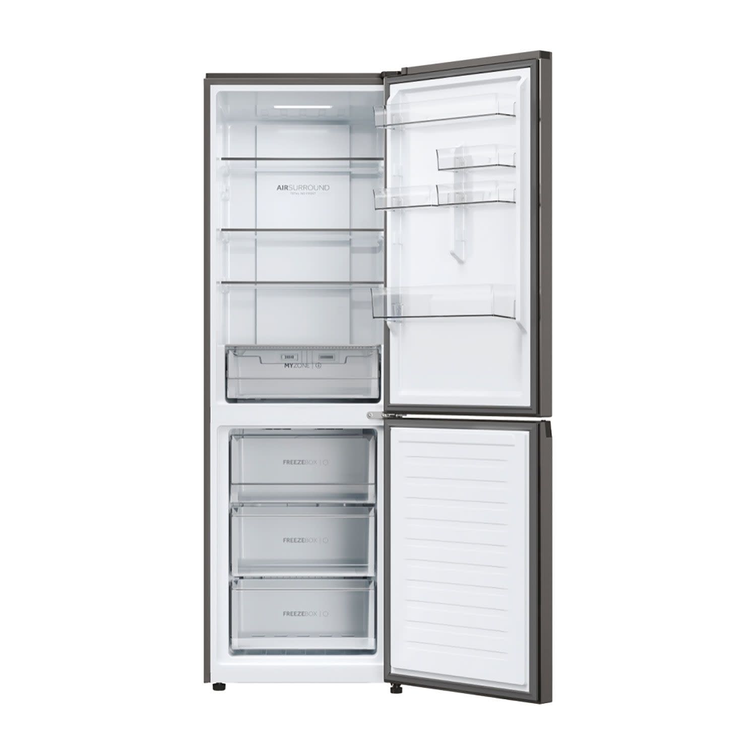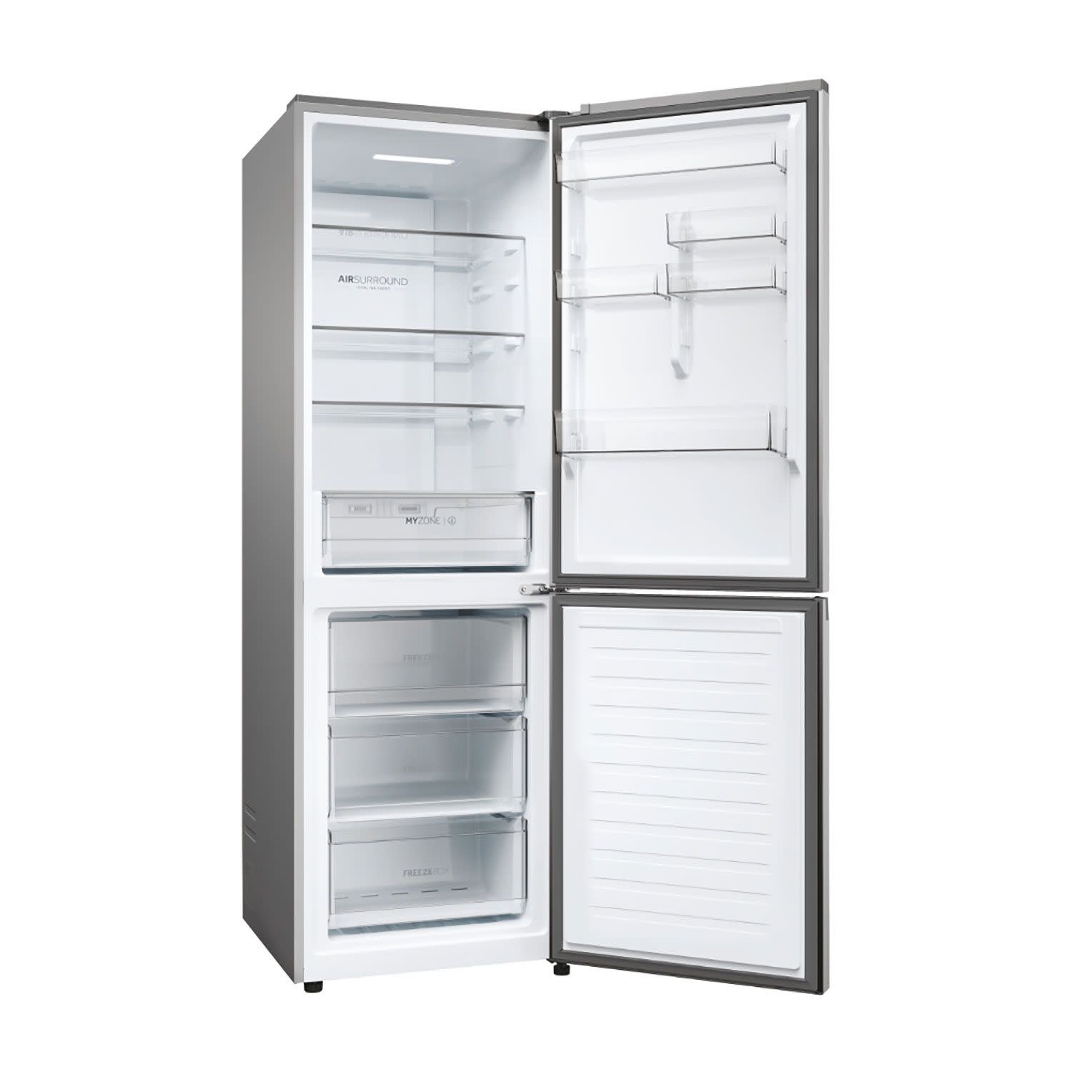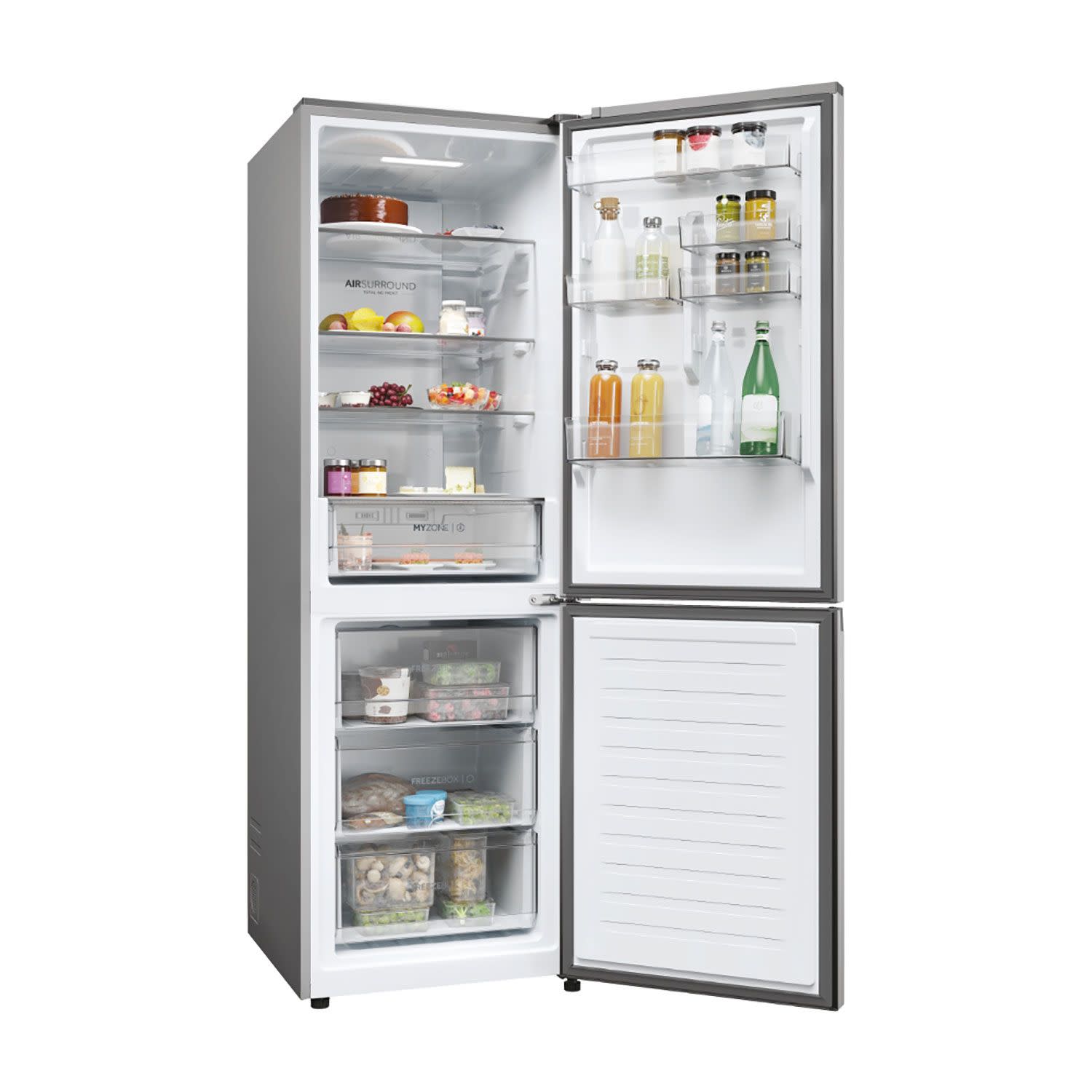Με την τεχνολογία Fresher Tech της Haier, Air Surround, ο αέρας ρέει γύρω από το ψυγείο με πιο ήπιο και απαλό τρόπο από ειδικούς πλευρικούς αεραγωγούς, κατανέμοντας ομοιογενώς τον κρύο αέρα που αγκαλιάζει τα τρόφιμα σε ολόκληρο τον θάλαμο του ψυγείου, χωρίς να βάλει απευθείας τρόφιμα και να τα αφυδατώνει. Γι' αυτό το Haier Air Surround, διατηρεί τη γεύση και τη φρεσκάδα του φαγητού έως και 99% μετά από 7 ημέρες, όπως την πρώτη μέρα αγοράς.