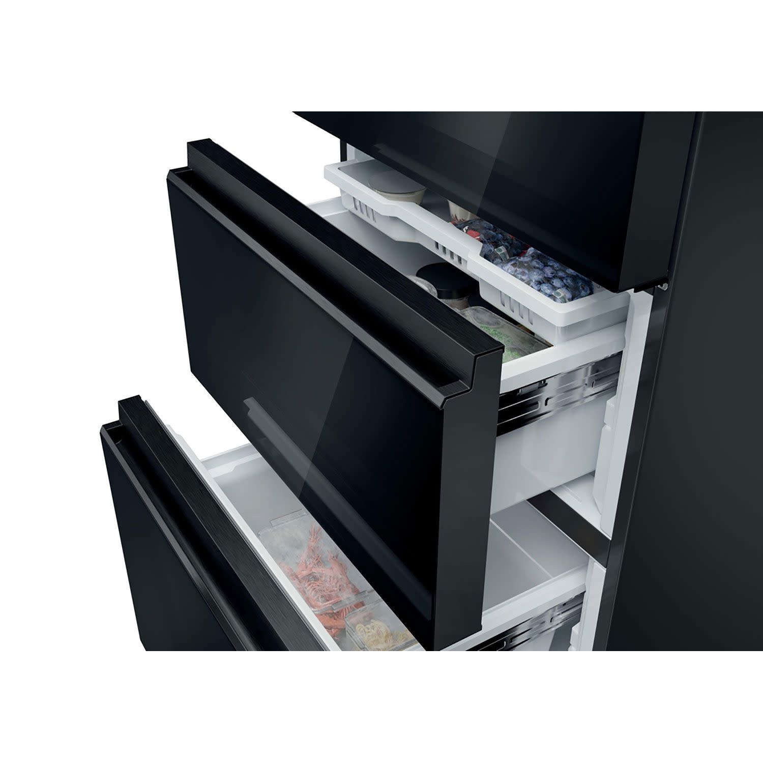 Το Black Glass φινίρισμα δίνει στο ψυγείο διαχρονική αισθητική και μοντέρνο χαρακτήρα, ώστε να ταιριάζει αρμονικά σε κάθε κουζίνα.