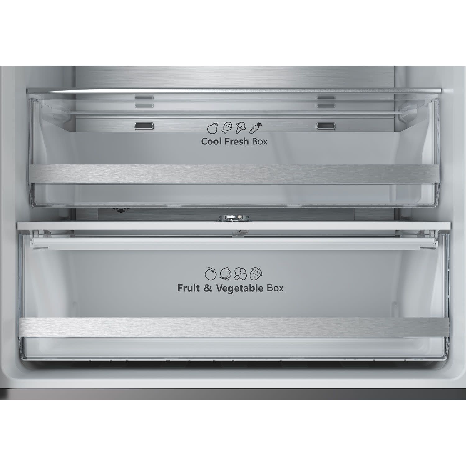 Η πρωτοποριακή τεχνολογία Total No Frost κατανέμει ομοιόμορφα τον κρύο αέρα σε όλο το ψυγείο και τον καταψύκτη για να αποτρέψει το σχηματισμό κρυστάλλων πάγου. Παρέχει κατάλληλες συνθήκες αποθήκευσης, χάρη στις οποίες τα τρόφιμα παραμένουν φρέσκα και υγιή για μεγαλύτερο χρονικό διάστημα. Δε χρειάζεται να σπαταλάς χρόνο και ενέργεια για να ξεπαγώσεις τη συσκευή.