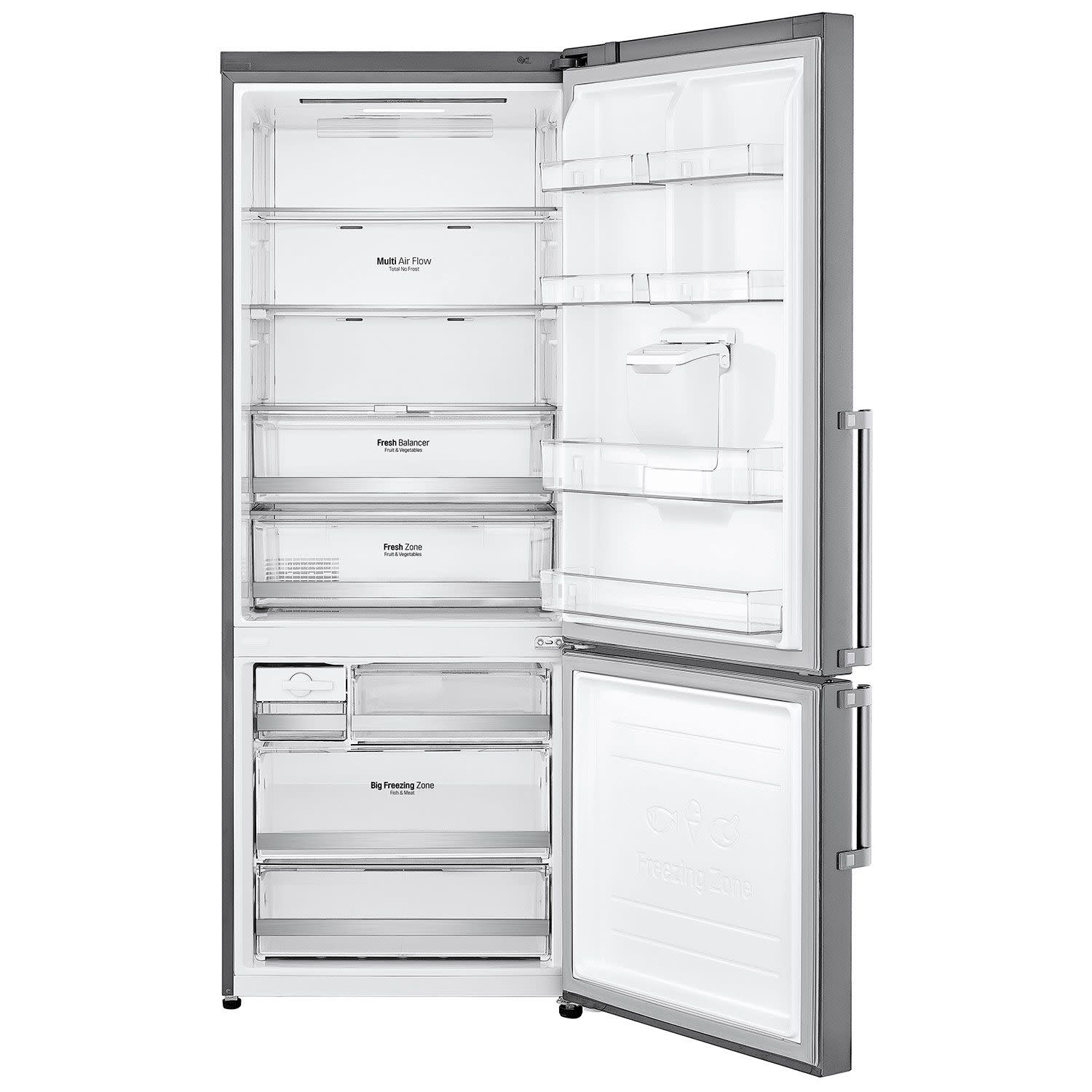 LG Ψυγειοκαταψύκτης GBF567PZCMB με καθαρή χωρητικότητα 461lt, τύπο ψύξης Total No Frost για να σε απαλλάσσει από τη διαδικασία της απόψυξης και βρυσάκι νερού στην πόρτα για μεγαλύτερη ευκολία.