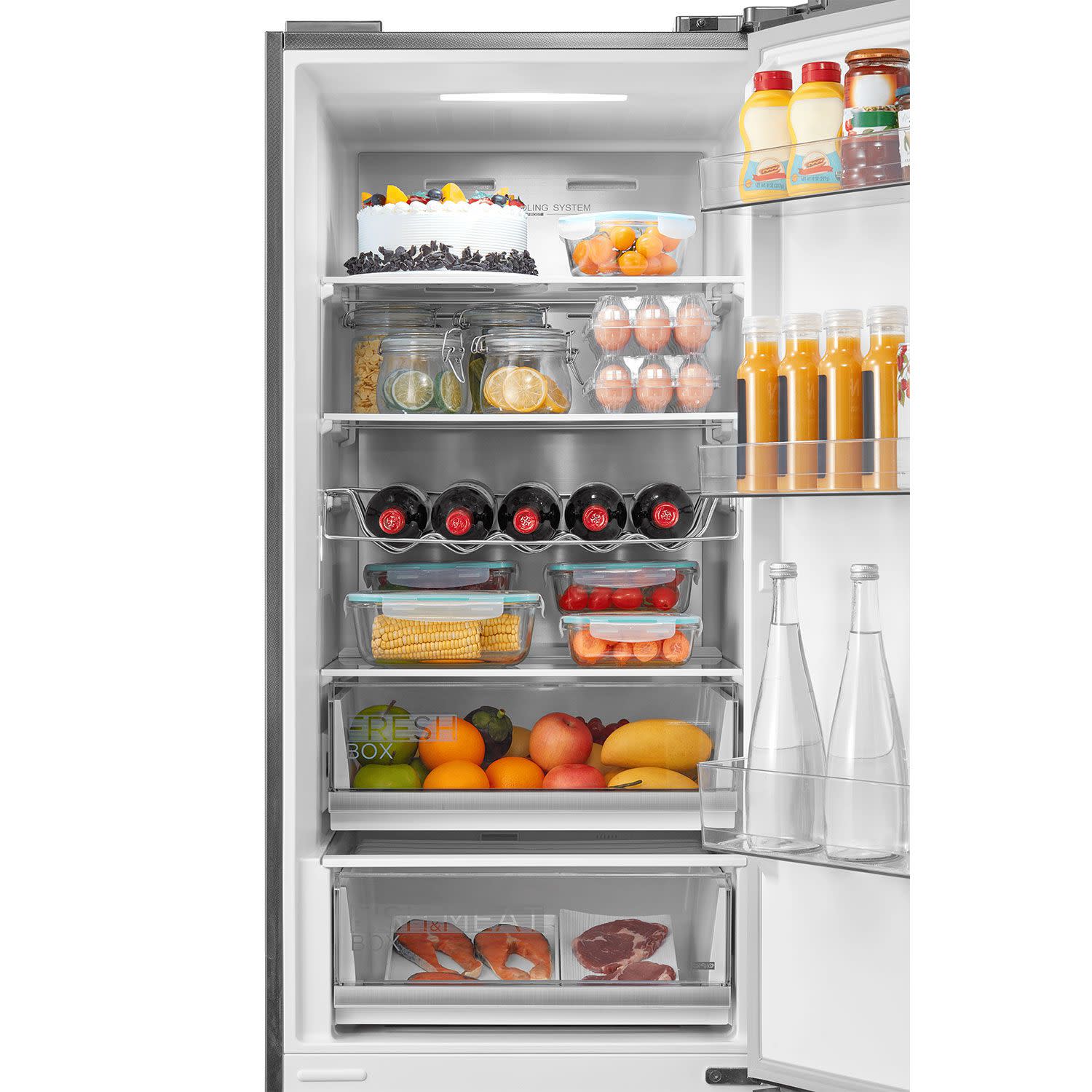 Ψυγειοκαταψύκτης Midea με φρουτολεκάνη που διατηρεί φρέσκα φρούτα και λαχανικά και συρτάρι Vario Space για τα ευαίσθητα τρόφιμα. Μαζί του θα ξεχάσεις την απόψυξη, χάρη στο σύστημα No Frost.