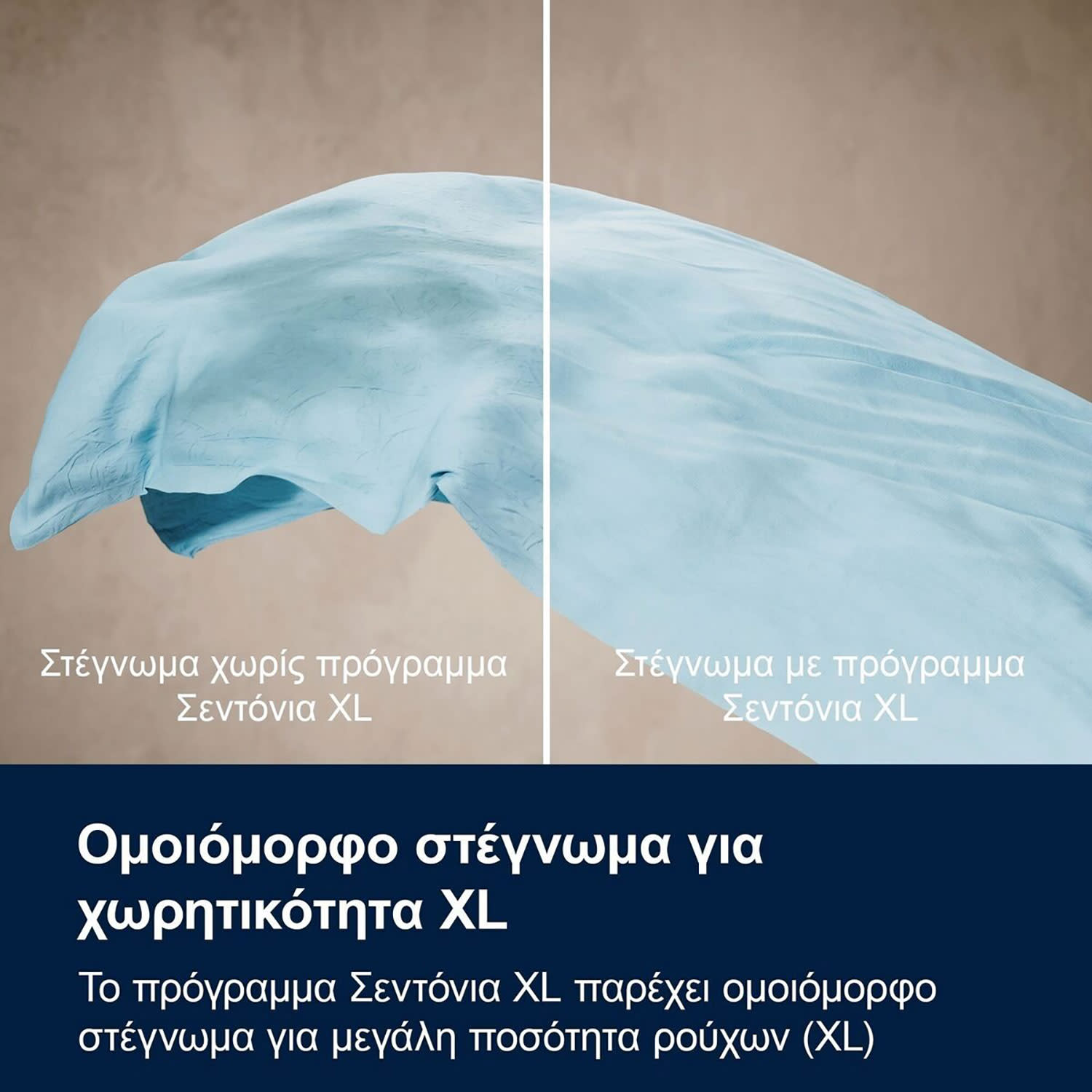 Το πρόγραμμα Family Bedlinen XL παρέχει ομοιόμορφα αποτελέσματα στεγνώματος για φορτία XL, συμπεριλαμβανομένων των σετ κλινοσκεπασμάτων, χωρίς να χρειάζεται να επανεκκινήσεις το στεγνωτήριο.