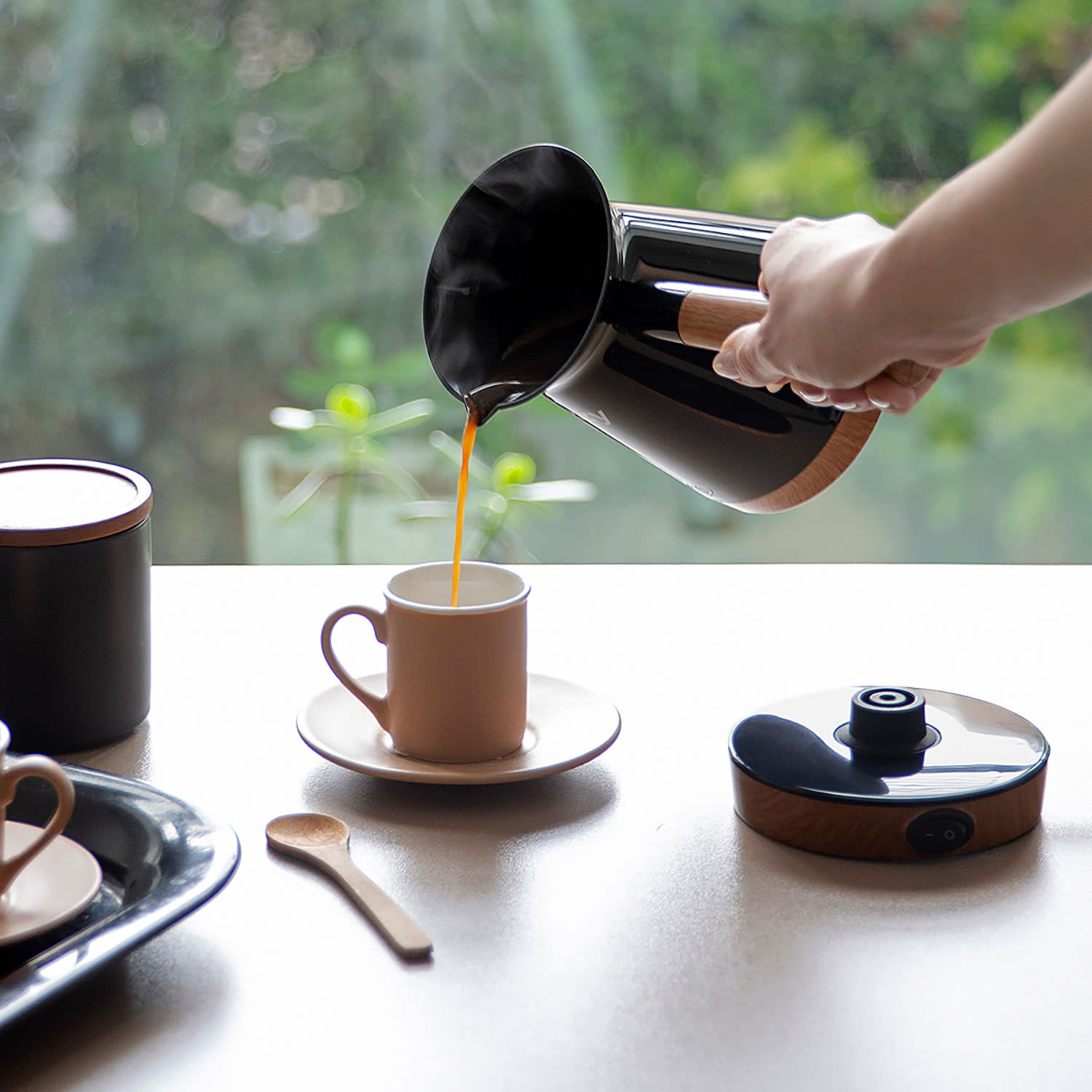 Η βάση περιστρέφεται 360°, με αποτέλεσμα να προσεγγίζεις το μπρίκι… όπου και αν κάθεσαι, όποιο και αν είναι το «καλό» σου χέρι! Ακόμα, αποσπάται από το μπρίκι για να απομακρύνεις εύκολα τα υπολείμματα καφέ.