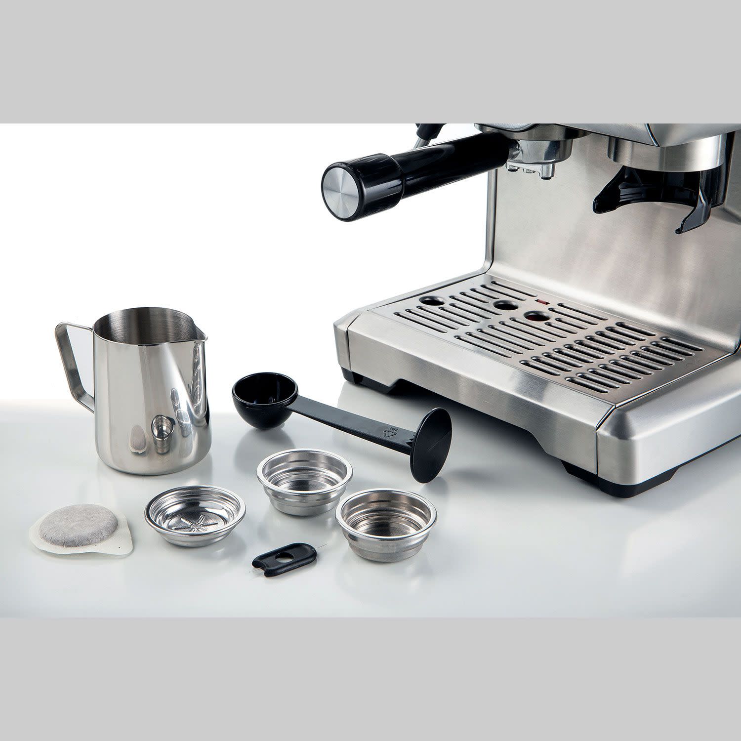 Δεν της λείπει τίποτα, για να σε εξυπηρετεί σε κάθε στάδιο της χρήσης της! Διαθέτει δοσομετρητή καφέ, για να μην πέφτεις ποτέ έξω στους υπολογισμούς σου! Επιπλέον, μπορείς να ετοιμάζεις το αφρόγαλα για το cappuccino στο δοχείο από ανοξείδωτο ατσάλι που περιλαμβάνει, ενώ διαθέτει και βελόνα καθαρισμού για το ακροφύσιο, αλλά και φίλτρο αποσκλήρυνσης νερού για ασφάλεια και αποτελεσματική συντήρηση!