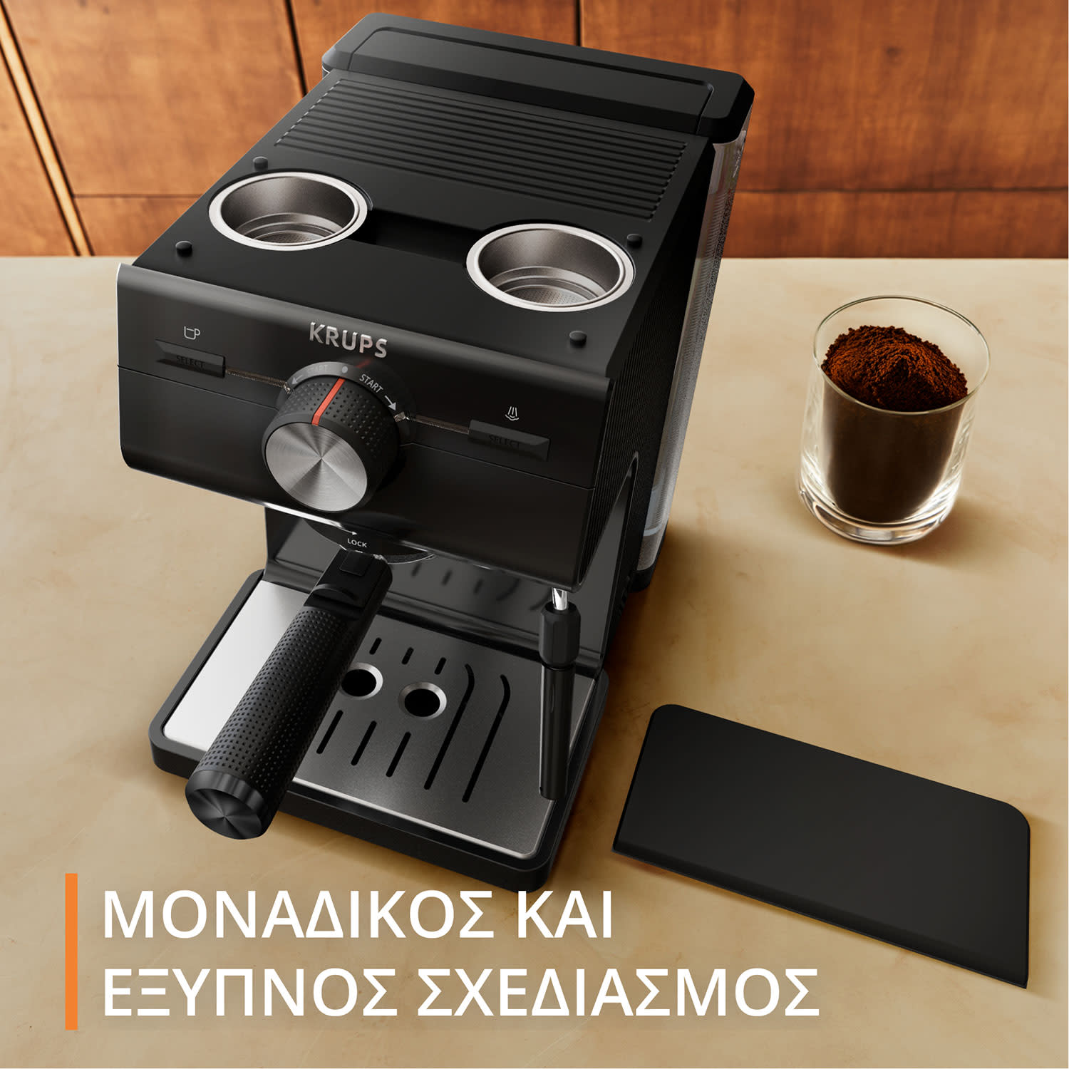 Η Καφετιέρα της Krups με πίεση 15bar, χειροκίνητο διακόπτη ακριβείας και ενσωματωμένο ακροφύσιο ατμού, σου προσφέρει κάθε φλιτζάνι καφέ όπως το λαχταράς… Εύκολα, γρήγορα & με επαγγελματική ποιότητα!
