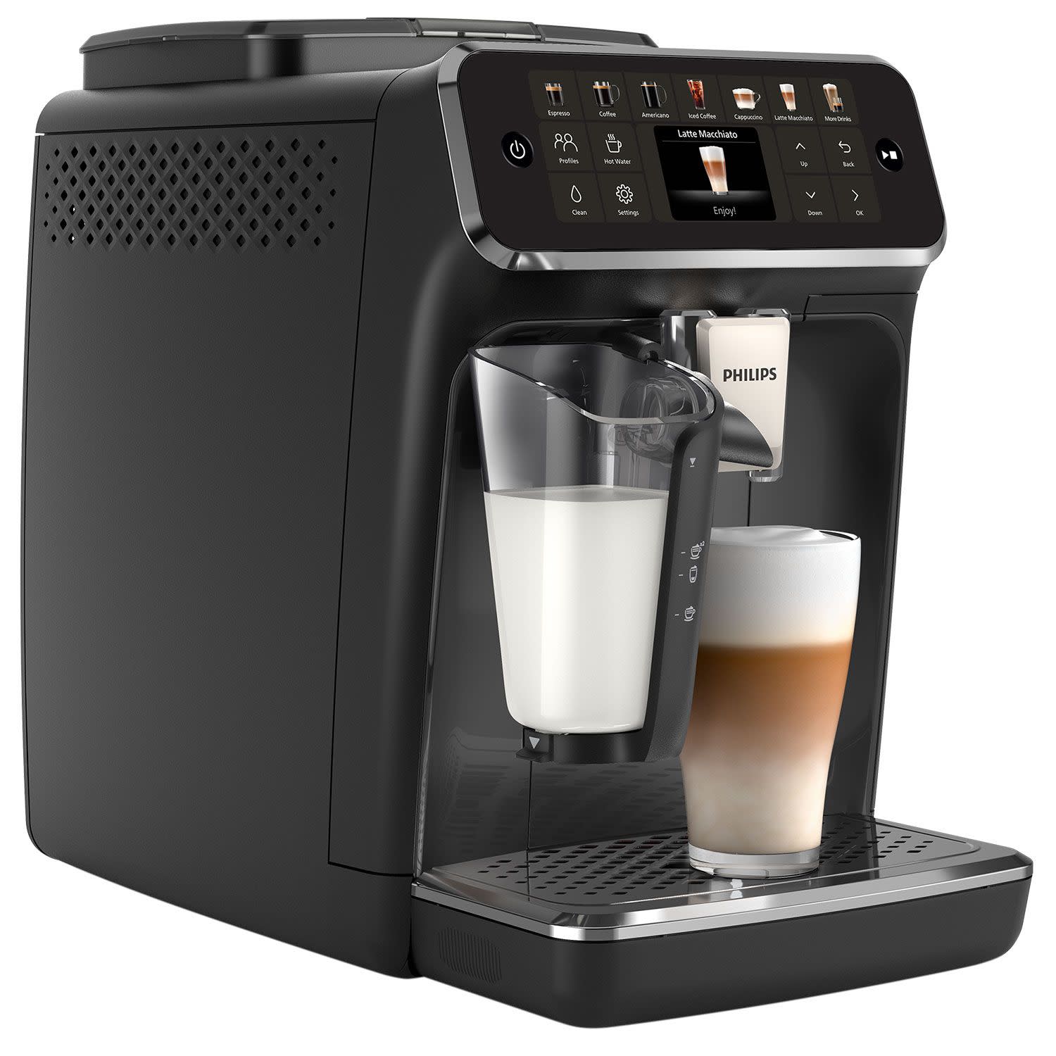 Η διαισθητική οθόνη θα σε βοηθήσει να προσαρμόσεις την ένταση και το μήκος του καφέ, όπως και την ένταση του γάλακτος. Όταν βρεις τις ιδανικές ρυθμίσεις για σένα, η συσκευή σου θα τις αποθηκεύσει απευθείας στο προφίλ σου!