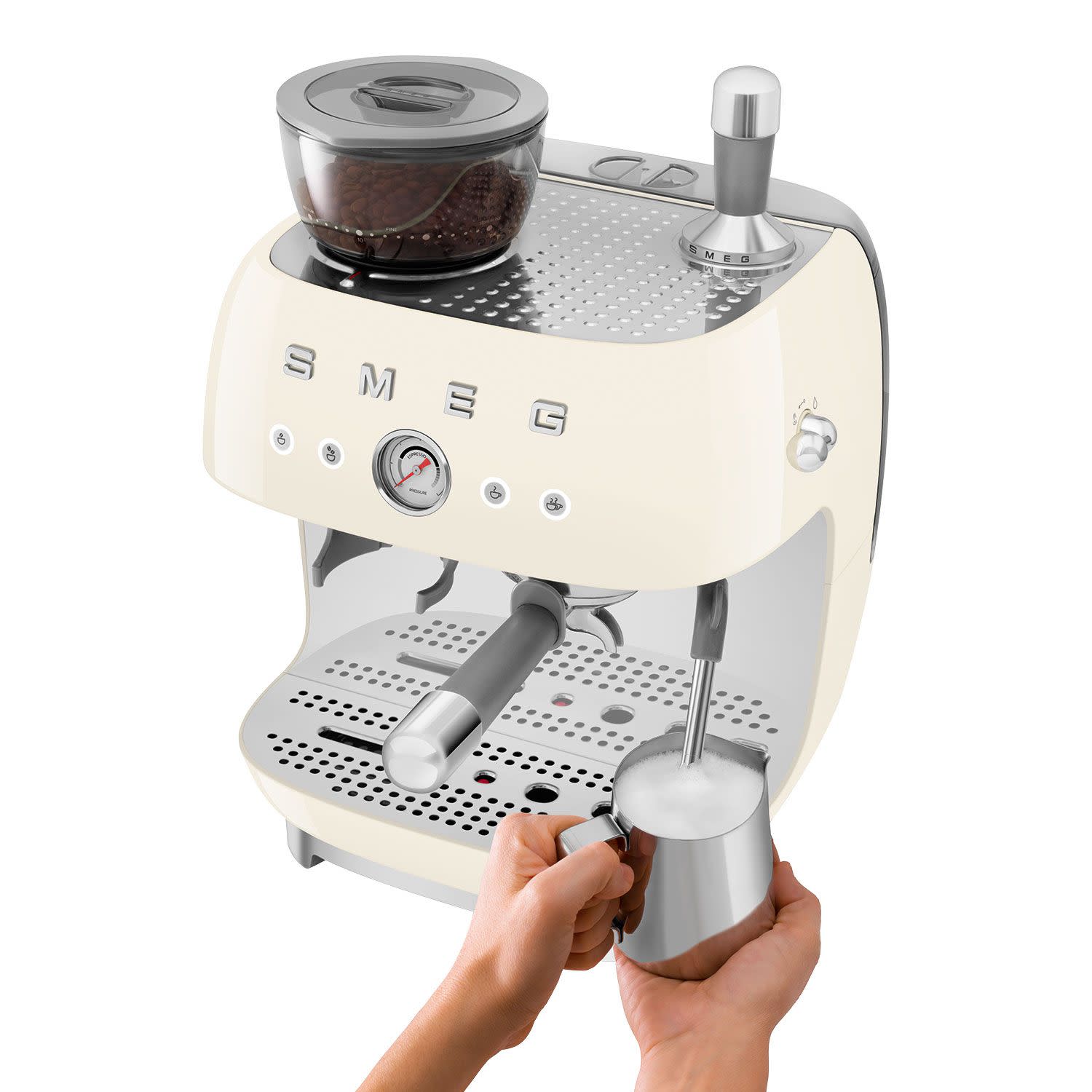 Με ενσωματωμένο μύλο, διπλό thermoblock και λειτουργία διπλού καφέ, η SMEG φέρνει την εμπειρία του barista σπίτι σου. Γρήγορη, παιχνιδιάρικη και πάντα έτοιμη να φτιάξει τον τέλειο καφέ!