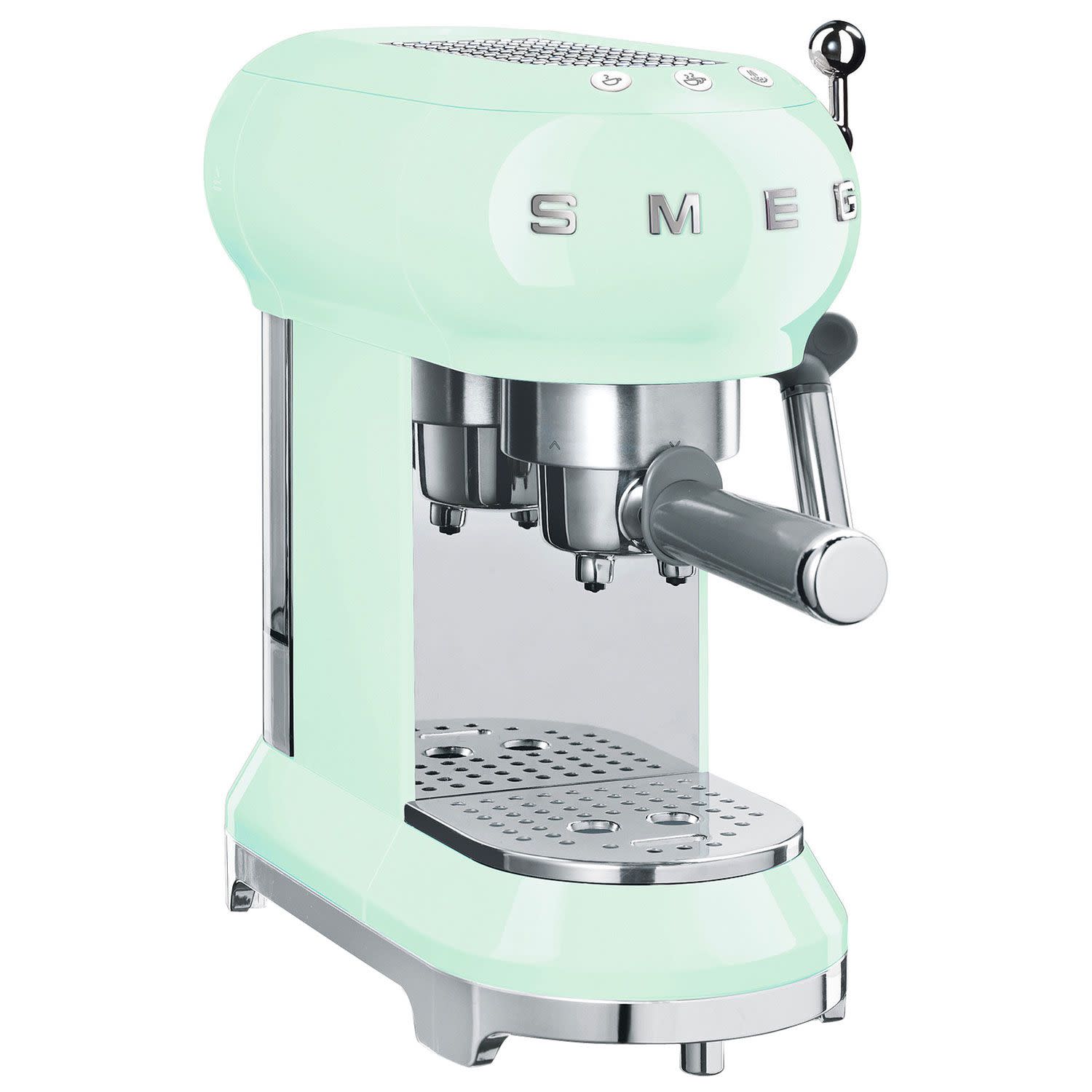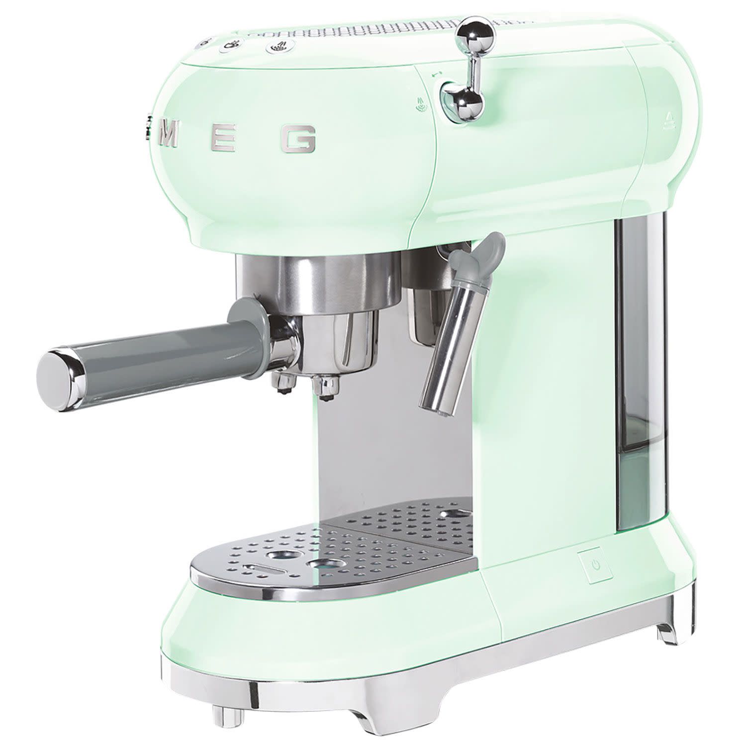 Φιστικί Smeg μηχανή espresso ECF02PGEU με ισχύ 1350W και πίεση 15bar, για να απολαμβάνεις καφέ επαγγελματικού επιπέδου στο σπίτι! Μπορείς να χρησιμοποιήσεις αλεσμένο καφέ ή χάρτινες ταμπλέτες ανάλογα με την προτίμηση σου, ενώ το σύστημα θέρμανσης Thermoblock εγγυάται εξειδικευμένο αποτέλεσμα κάθε φορά! Η τέλεια συσκευή για να γίνεις ένας barista στην κουζίνα σου!