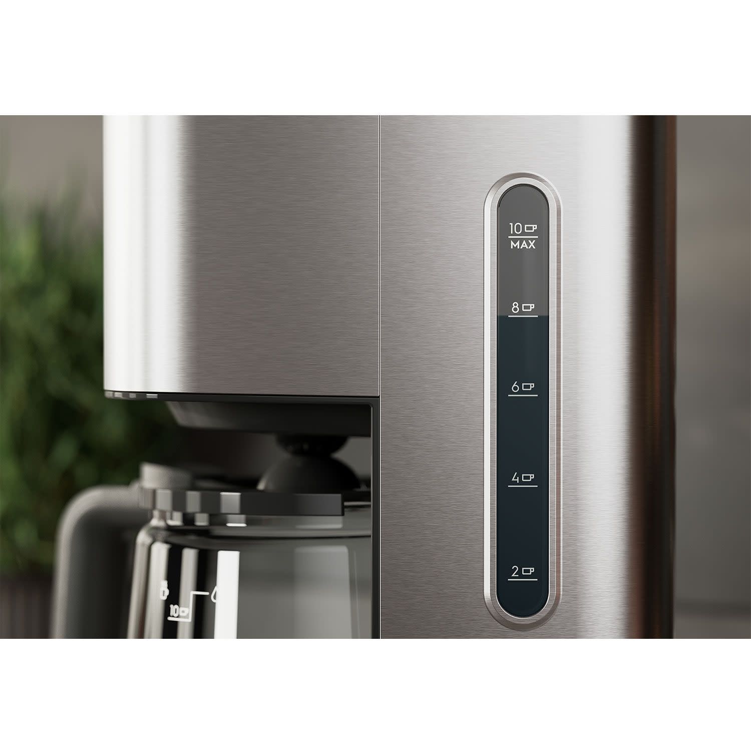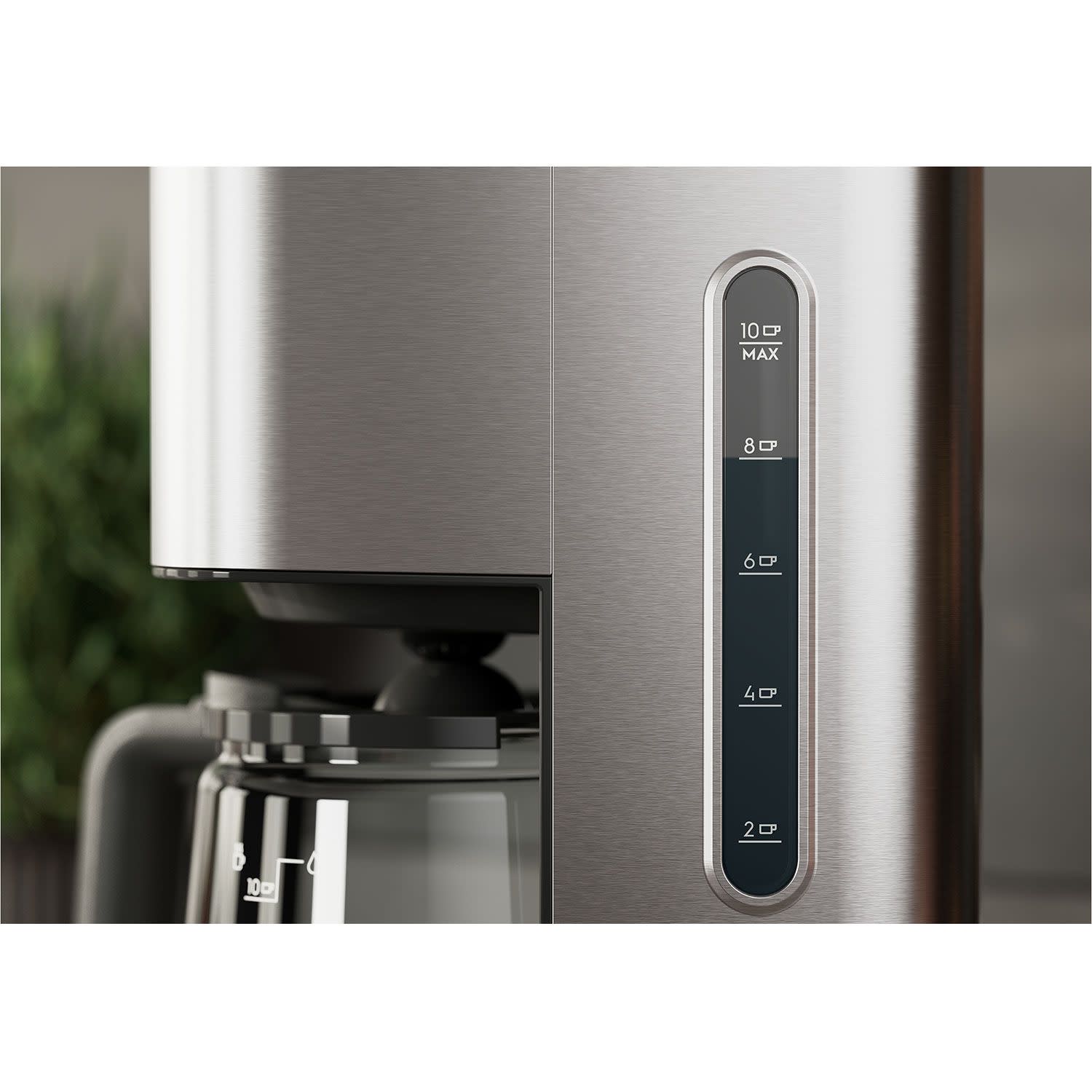 Η καφετιέρα σου διαθέτει διαυγή ένδειξη στάθμης νερού, η οποία σου επιτρέπει να γεμίζεις το δοχείο υποδοχής με την ακριβή ποσότητα νερού για 2-10 φλιτζάνια φρέσκου καφέ. Κι έτσι δεν ξεμένεις ποτέ από το αγαπημένο σου ρόφημα, ακόμα κι αν έχεις καλεσμένους.
