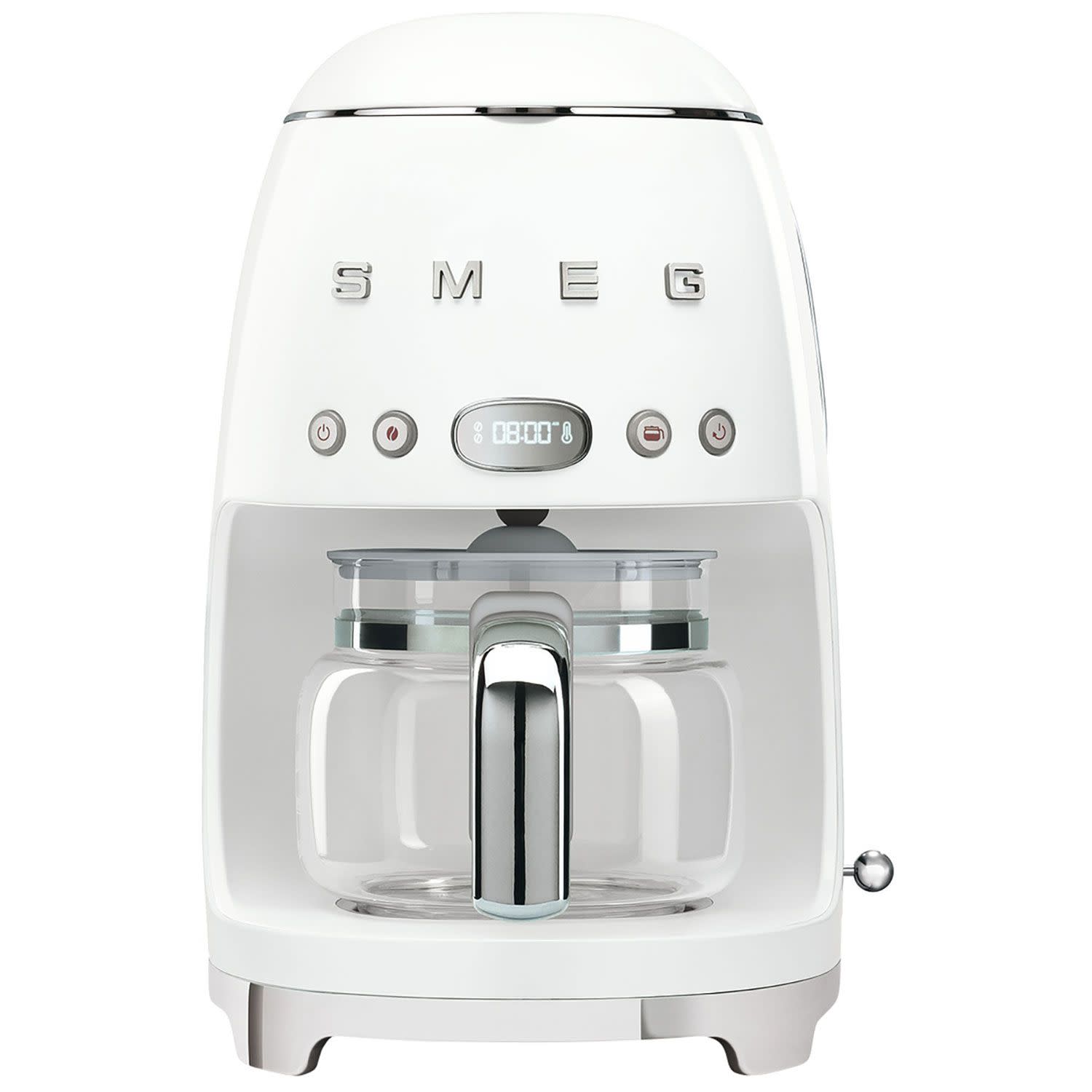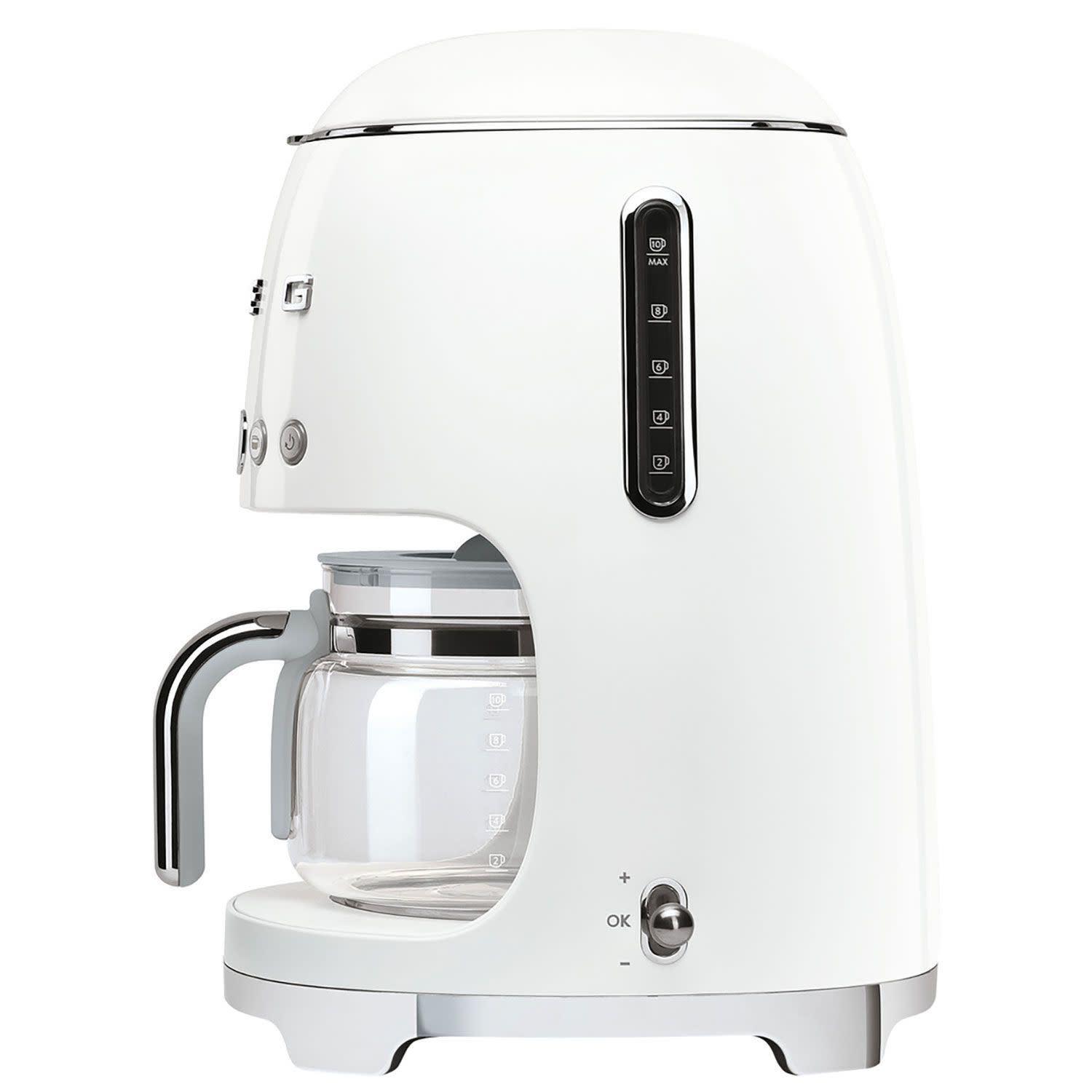 Λευκή καφετιέρα φίλτρου Smeg DCF01WHEU με ισχύ 1050W και μεγάλη χωρητικότητα για να υπάρχει πάντα αρκετός καφές για σένα και την παρέα σου! Η κρυστάλλινη κανάτα της πλένεται εύκολα στο πλυντήριο πιάτων χωρίς κόπο, ενώ το πλήκτρο επιλογής αρώματος σε αφήνει να επιλέξεις, αν το προτιμάς έντονο ή λεπτό! Με το anti-drip system δε μένει ίχνος σταγόνας στον πάγκο σου και η καθαριότητα γίνεται παιχνίδι! Απόλαυσε αρωματικό καφέ όλες τις ώρες της ημέρας!