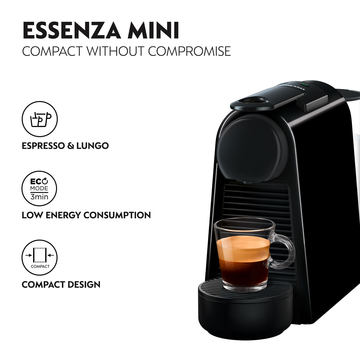 Η Nespresso δημιούργησε την πιο απλή και κομψή μηχανή μικρού μεγέθους, χωρίς κανέναν συμβιβασμό στη γεύση. Η μηχανή καφέ Essenza Mini προσφέρει 2 προγραμματιζόμενα μεγέθη κούπας Espresso & Lungo, ενώ συνδυάζει την ευκολία στη χρήση με την όμορφη σχεδίασή της και την ασυναγώνιστη ποιότητα για την παρασκευή τέλειου καφέ, κάθε φορά. Σε λίγα μόλις λεπτά, θα μπορείς να απολαμβάνεις ποιοτικό καφέ που σε ταξιδεύει σε ολόκληρο τον κόσμο της Nespresso, χάρη στην αντλία υψηλής πίεσης και το σύστημα ταχείας θέρμανσης.
