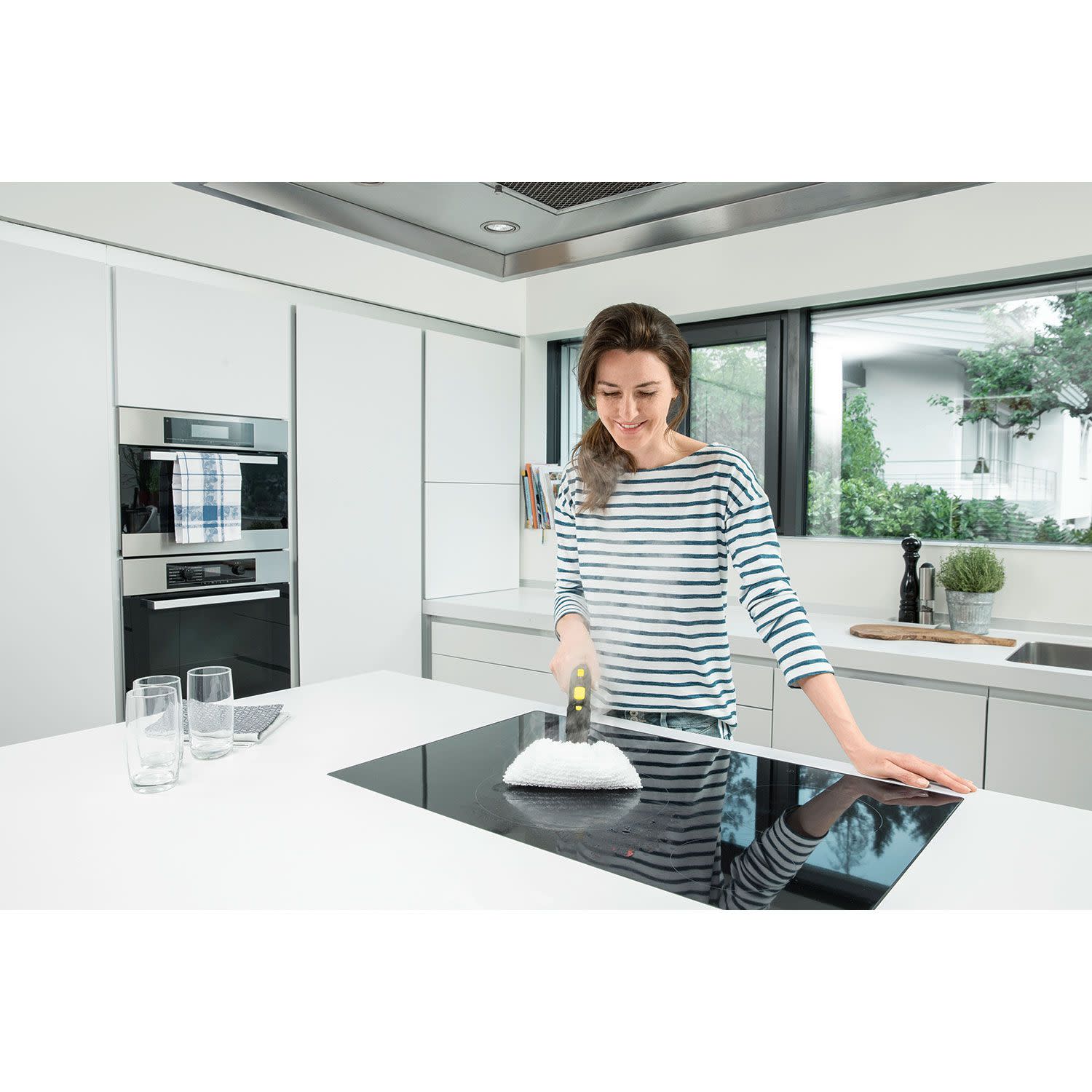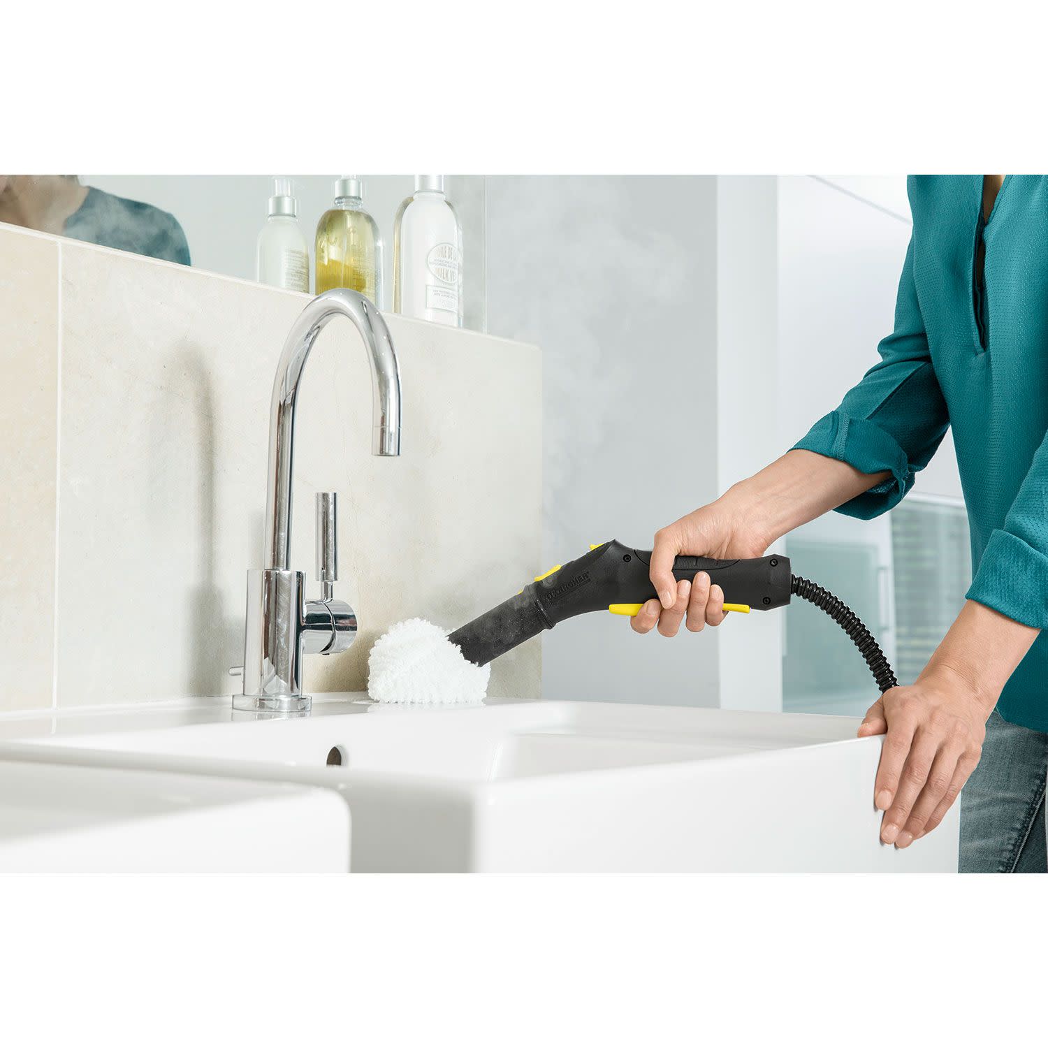 Η ένταση του ατμού προσαρμόζεται στο επίπεδο των ρύπων, καθαρίζοντας σχολαστικά τις επίμονες βρωμιές και τις λιπαρές επικαθήσεις, ενώ χρειάζεται ελάχιστο χρόνο ώστε να δημιουργήσει ισχυρό ατμό πίεσης 3,5bar και να απολυμάνει κάθε επιφάνεια. Επιπλέον, χρησιμοποιώντας το βολικό σύστημα hook-and-loop, το πανί δαπέδου από μικροΐνες μπορεί να στερεωθεί αβίαστα στο ακροφύσιο δαπέδου και να αφαιρεθεί ξανά χωρίς να χρειάζεται να έρθεις σε επαφή με τους ρύπους.
