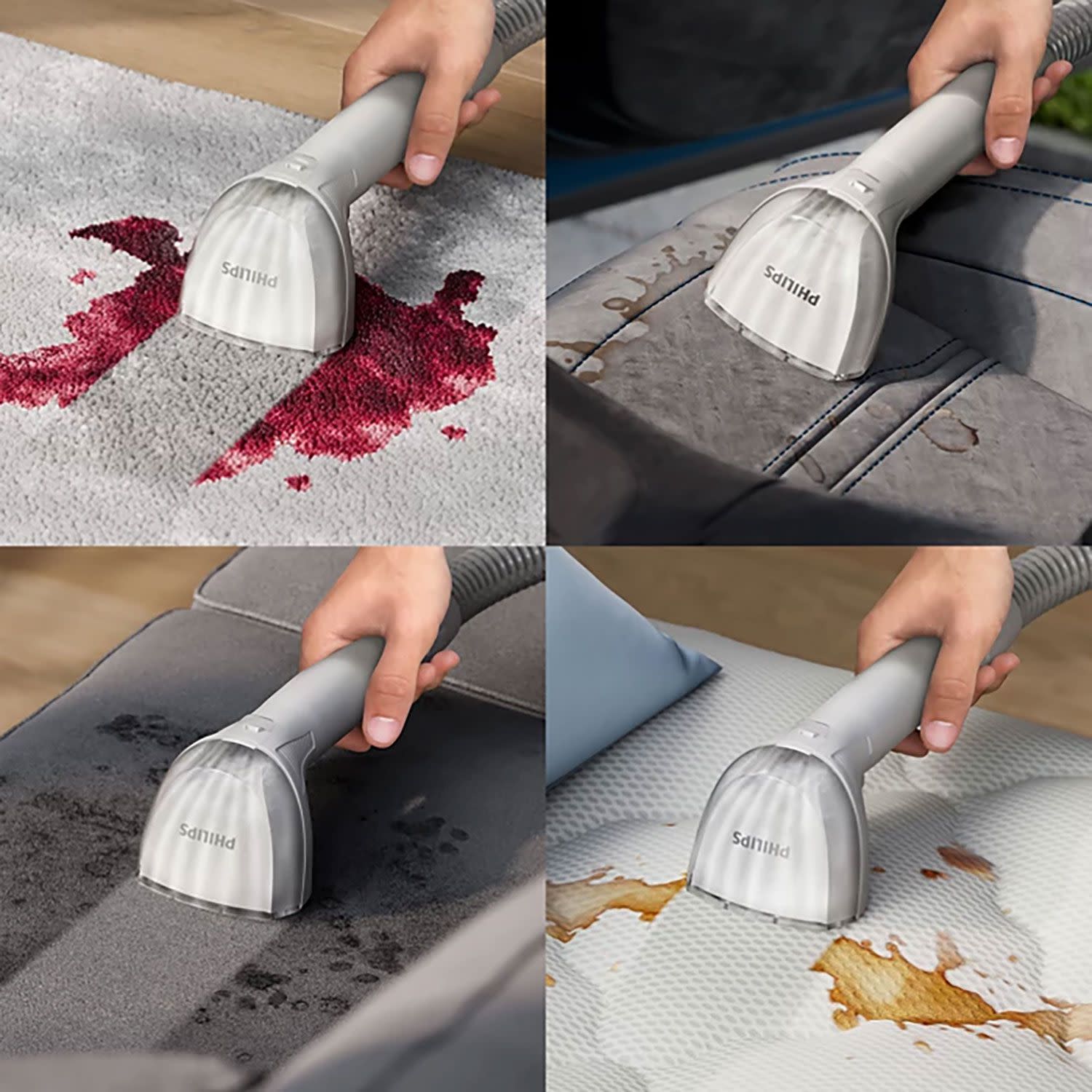 Χρειάζεται να καθαρίσεις τον καναπέ, τα στρώματα, τα χαλιά ή το κάθισμα του αυτοκινήτου; Όποια κι αν είναι η «αποστολή», ο καθαριστής της Philips θα την φέρει εις πέρας, καθώς το πέλμα 3 σε 1 αφαιρεί λεκέδες από πολλές και διαφορετικές μαλακές επιφάνειες.