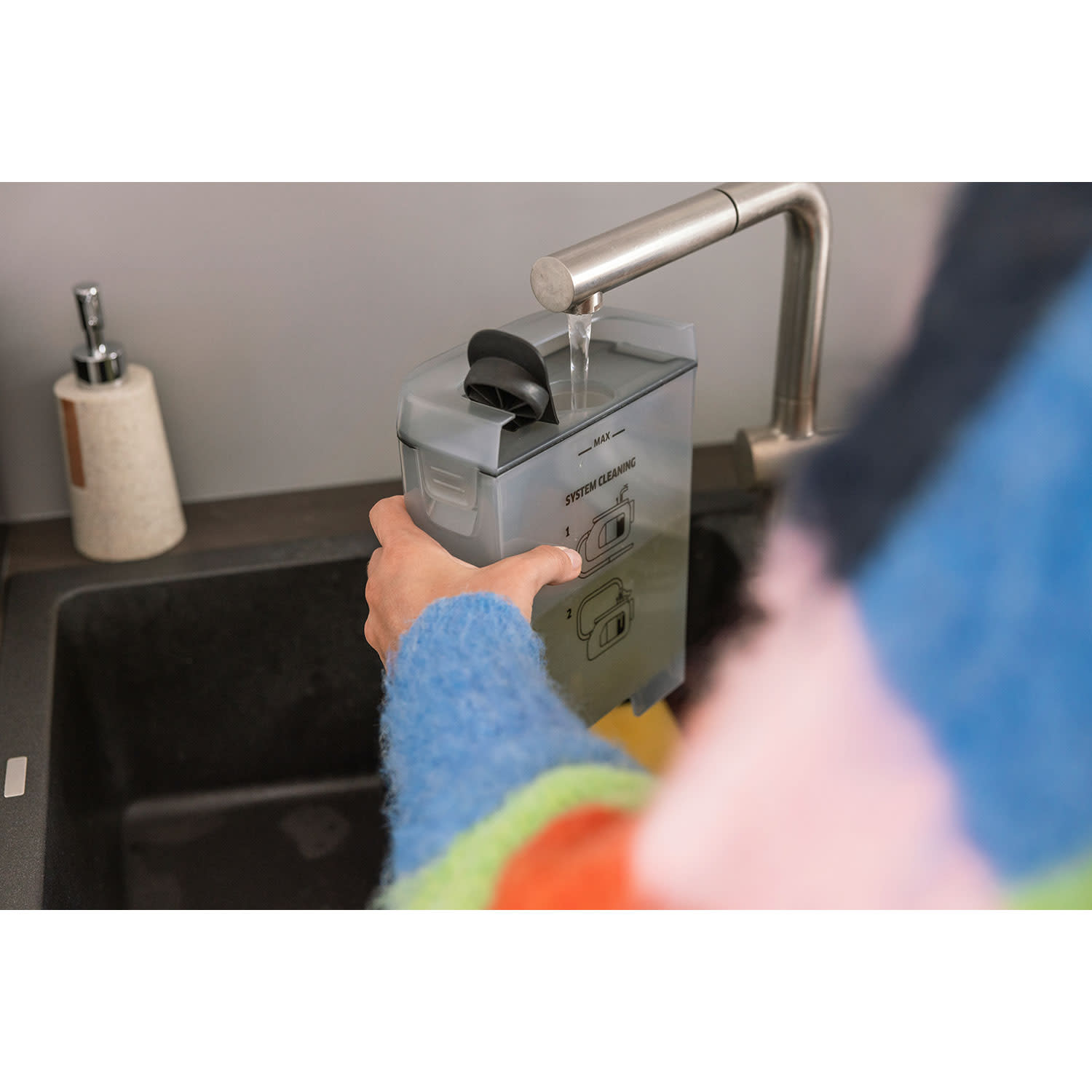 Με το σύστημα 2 κάδων μπορείς να αναπληρώνεις εύκολα και άνετα τη δεξαμενή καθαρού νερού και ταυτόχρονα να αδειάζει τη δεξαμενή βρώμικου νερού χωρίς καμία επαφή με τη βρωμιά.
