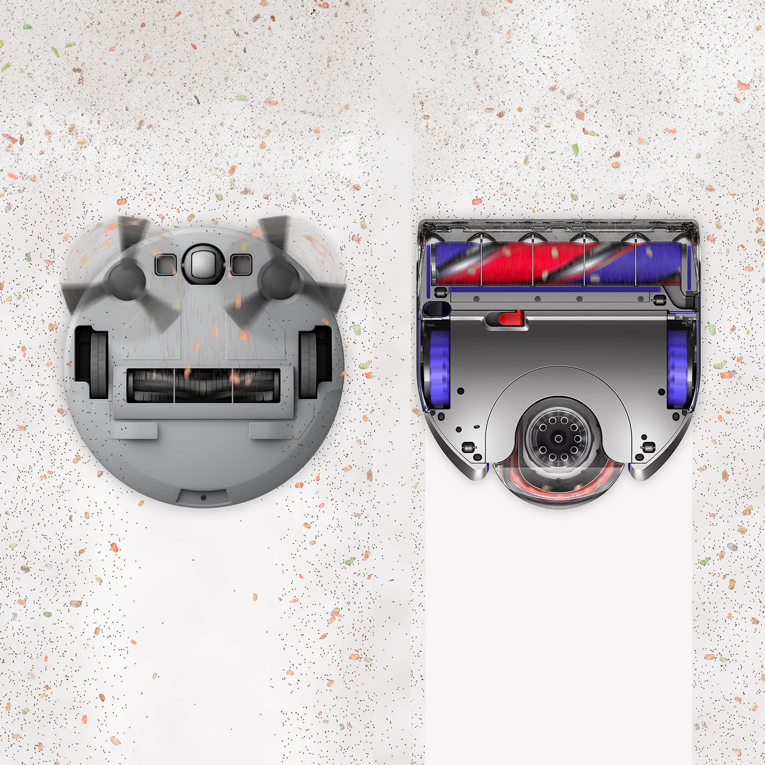 Σκούπα ρομπότ Dyson με υβριδική ράβδο καθαρισμού που φτάνει ως τις άκρες του τοίχου και αποτρέπει τη συσσώρευση τριχών. Διαθέτει φιλτράρισμα HEPA και συνδέεται με το smartphone σου μέσω app!