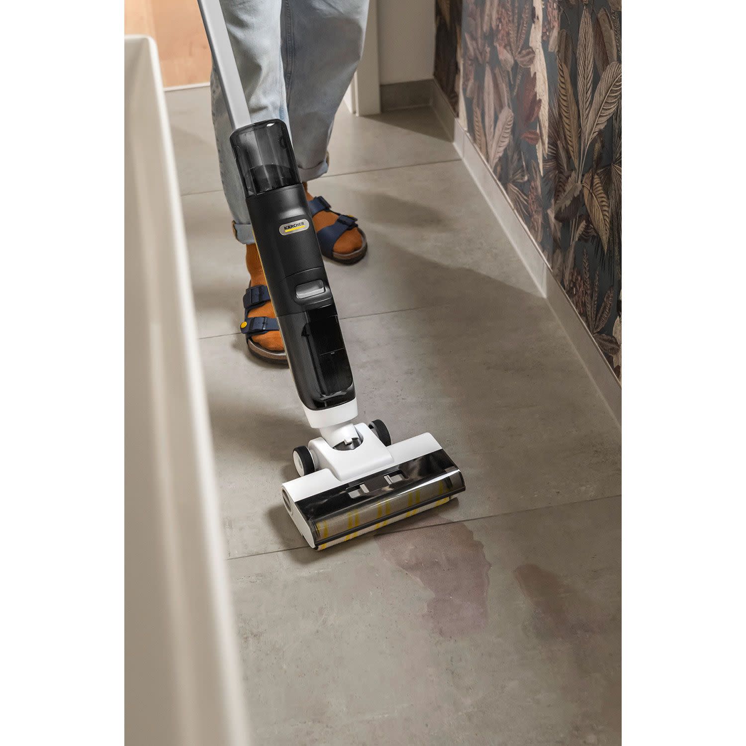 Σκούπα-σφουγγαρίστρα Karcher για σκούπισμα, σφουγγάρισμα & στέγνωμα. Με αυτονομία μπαταρίας 30 λεπτών, λειτουργία Advanced!Power και εξάλειψη των βακτηρίων κατά 99% κανένας λεκές δεν είναι ανίκητος!