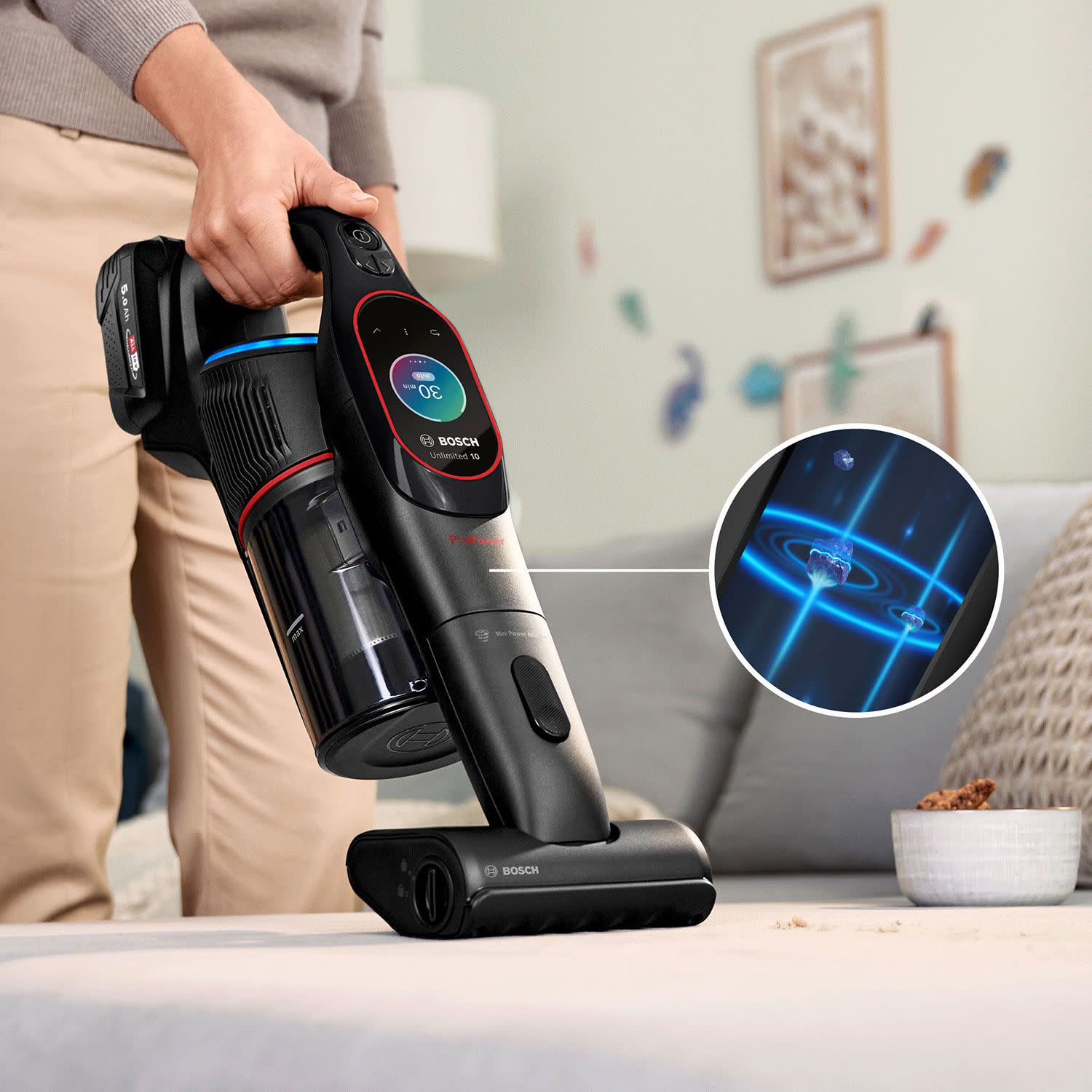 Η πανίσχυρη επαναφορτιζόμενη σκούπα, Unlimited 10 ProPower BCS1051POW της Bosch, εξασφαλίζει μεγάλη διάρκεια χρήσης και απίστευτη απόδοση.