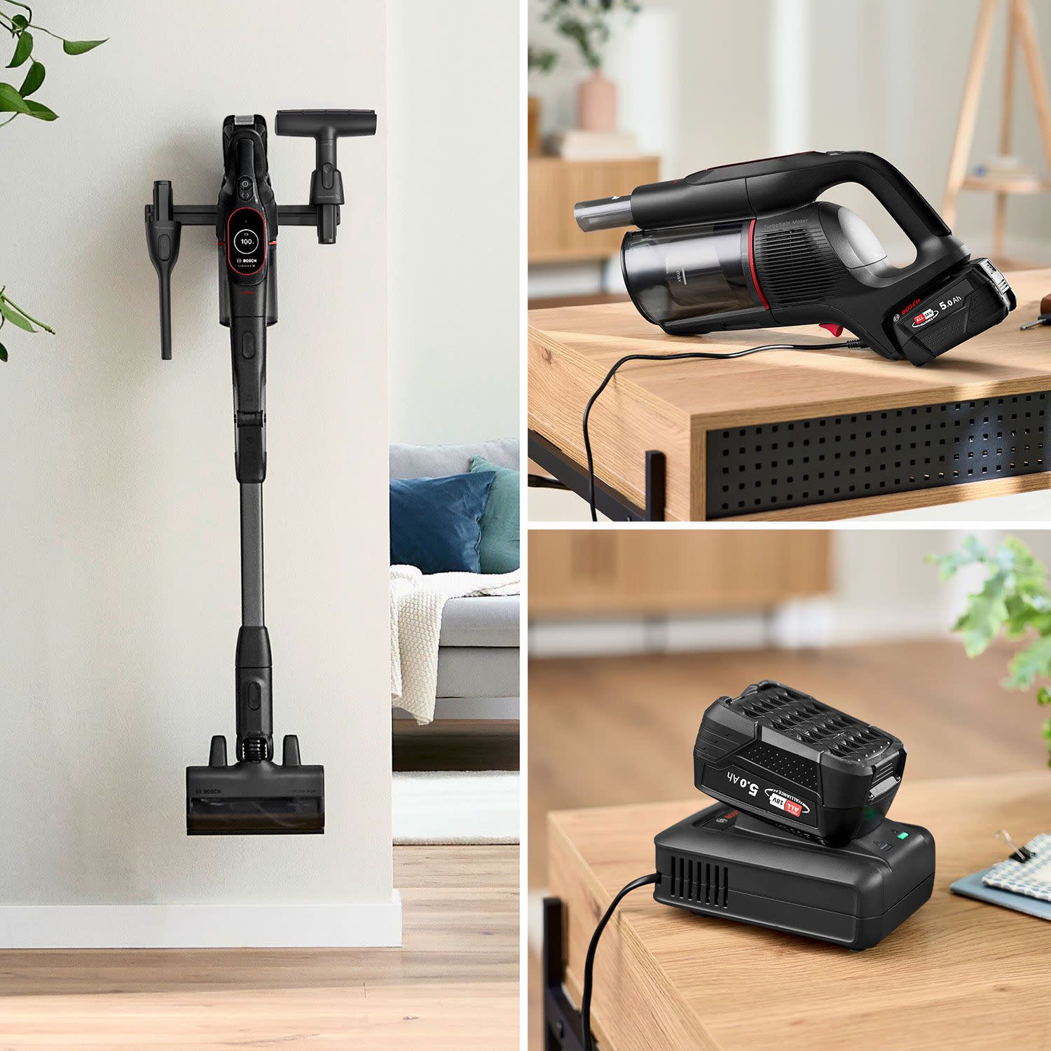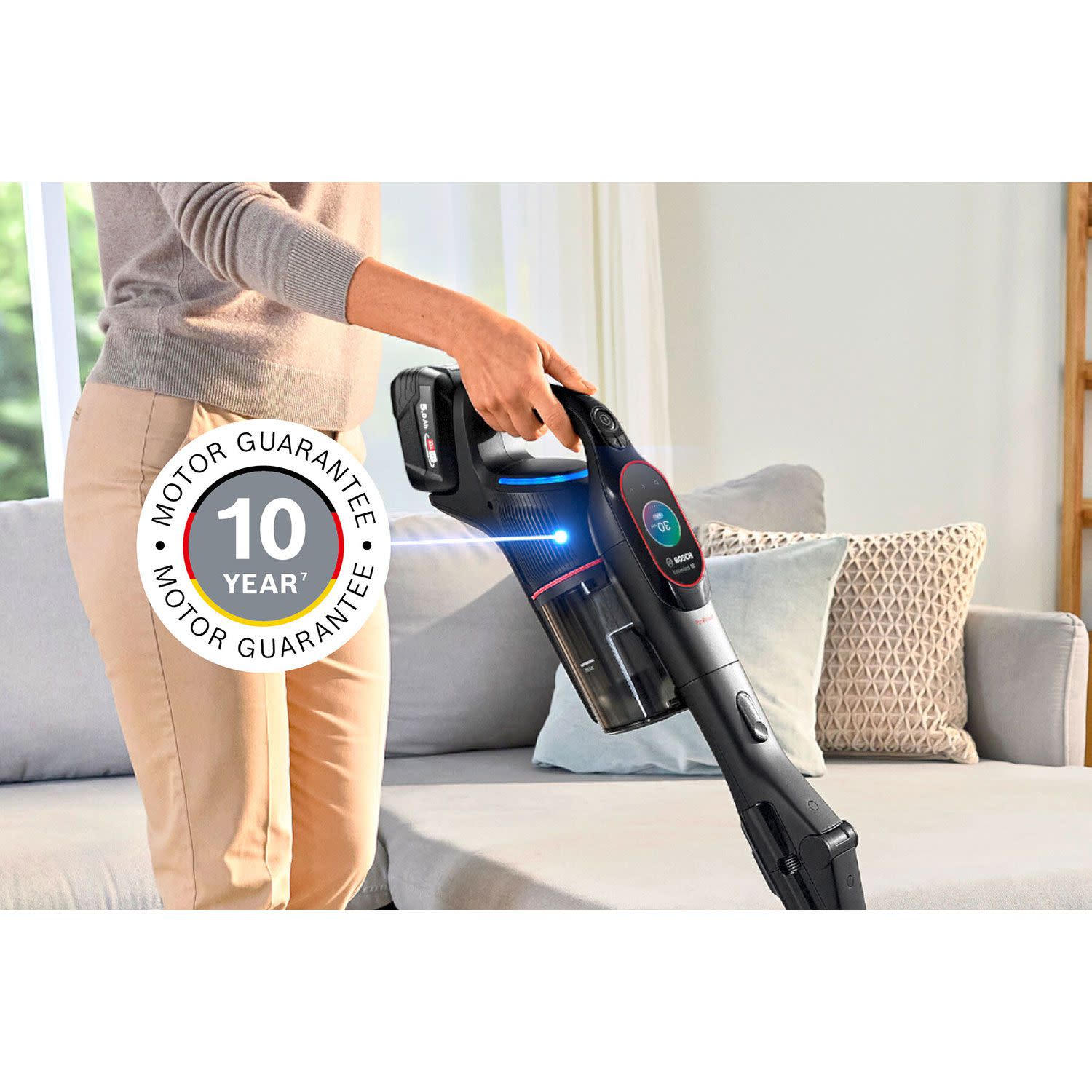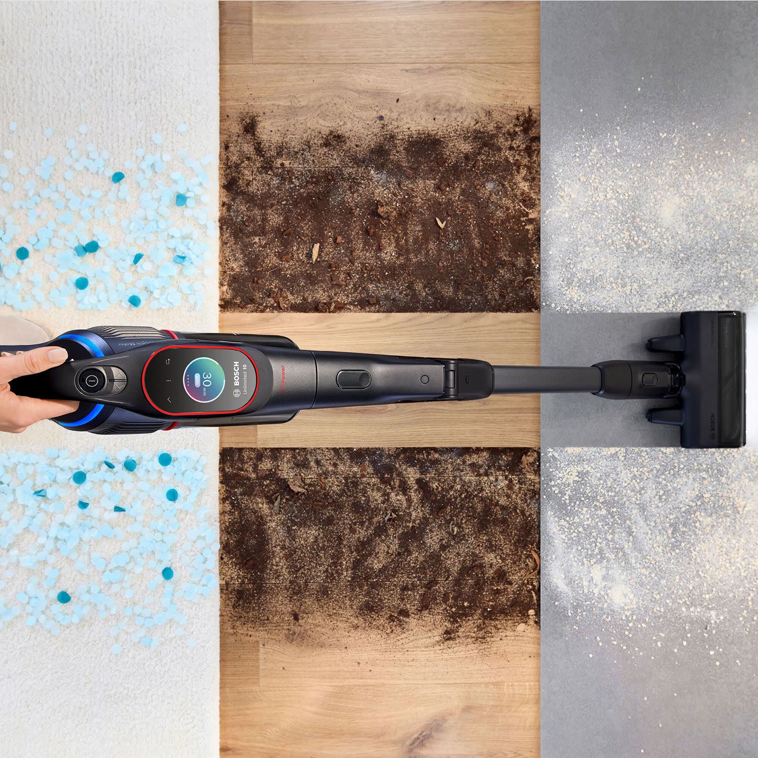 Πανίσχυρη σκούπα stick Bosch με μπαταρία μεγάλης χωρητικότητας ενέργειας και μοναδική τεχνολογία MicroClean που ανιχνεύει και σκουπίζει ακόμα και τη σκόνη που δε διακρίνει το ανθρώπινο μάτι