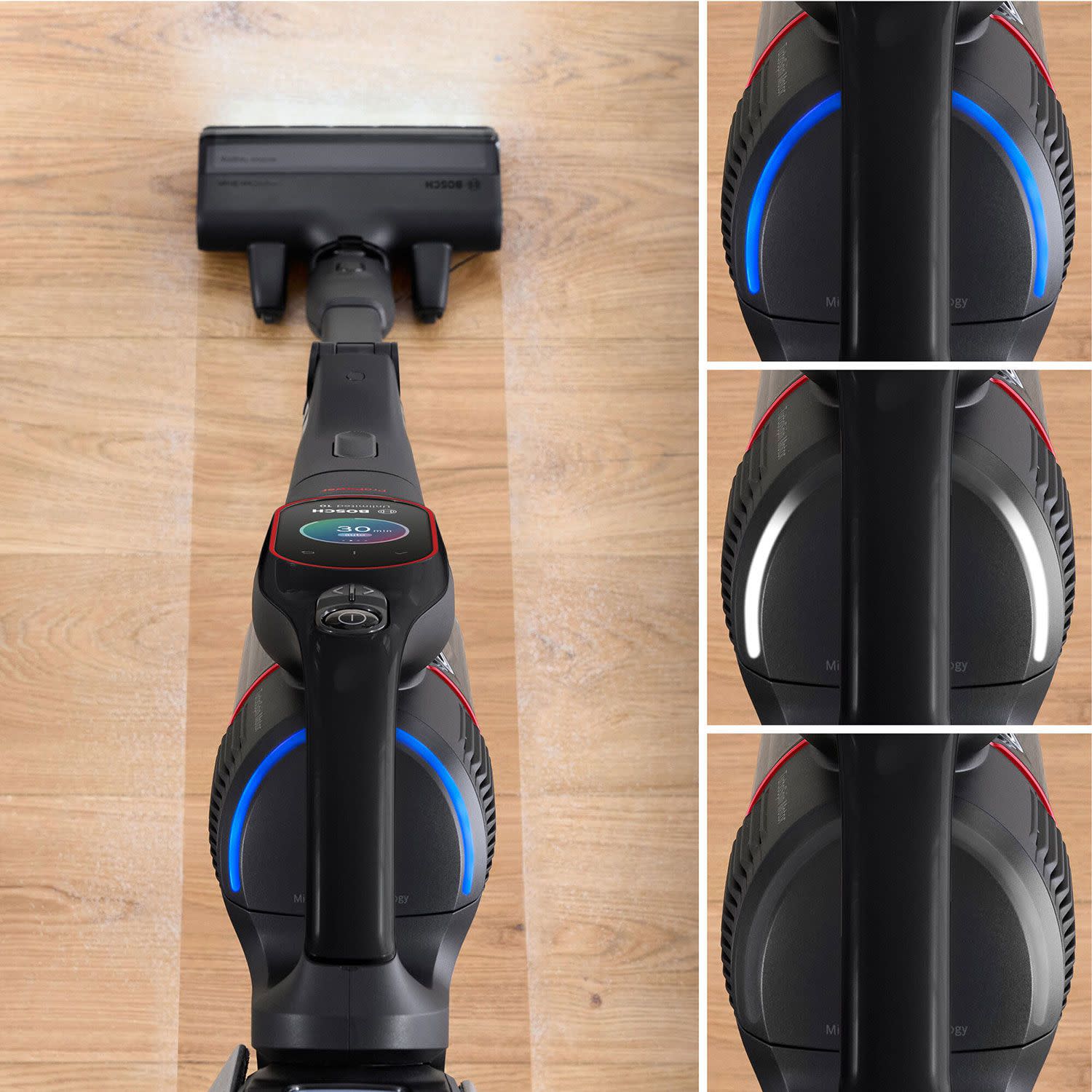 Το πέλμα MicroClean με βούρτσα και LED φωτισμό, αποδίδει την καλύτερη αναρρόφηση σκόνης της Bosch, ενώ ο Δακτύλιος MicroClean φωτίζεται πλήρως μπλε, για να ξέρεις ότι η επιφάνεια που καθαρίζεις είναι απόλυτα καθαρή.
