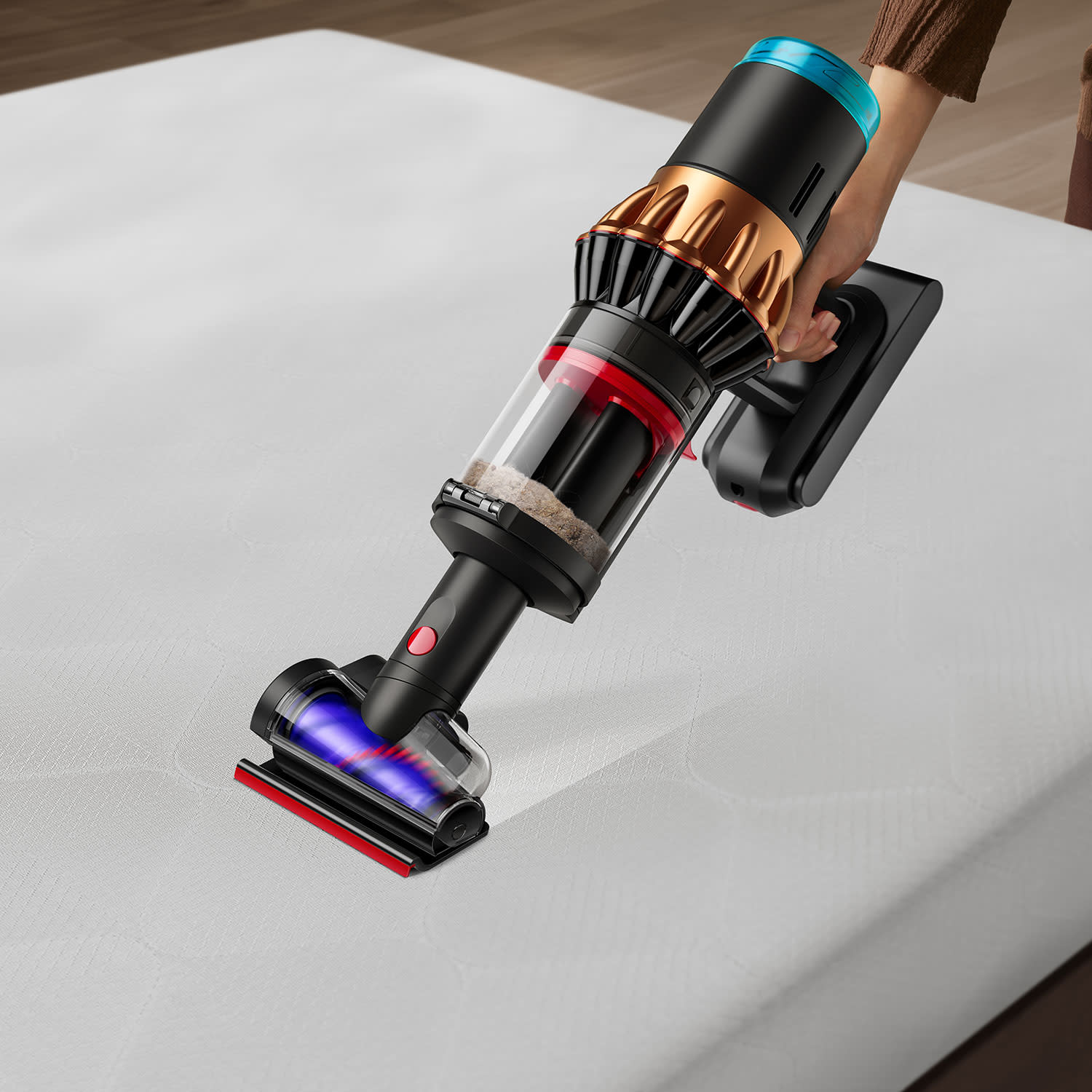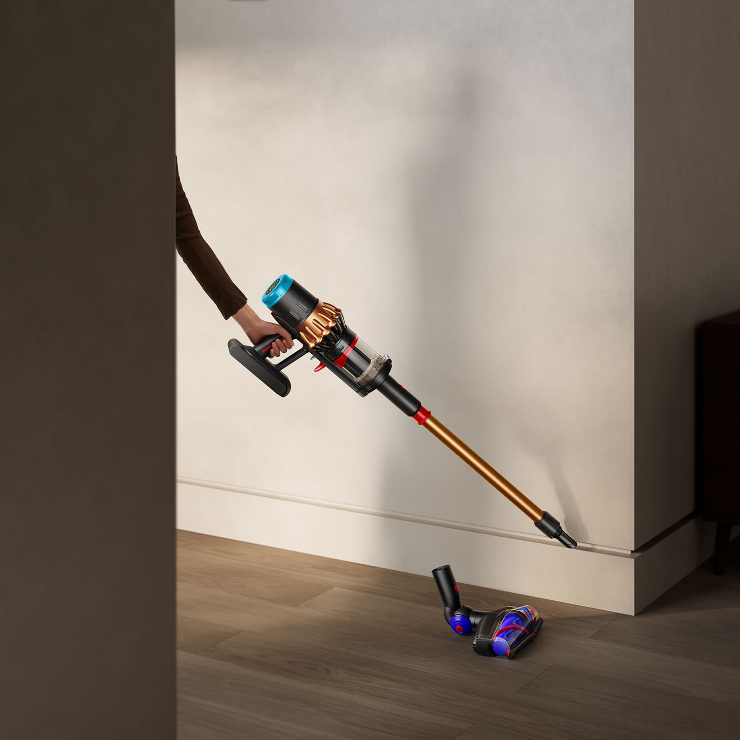 Επαναφορτιζόμενη σκούπα stick της Dyson με ισχύ απορρόφησης 315AW, τεχνολογία CleanCompaktor™ για λιγότερο συχνό άδειασμα και τεχνολογία Anti-tangle που δεν αφήνει τις τρίχες να μπλεχτούν στο πέλμα.