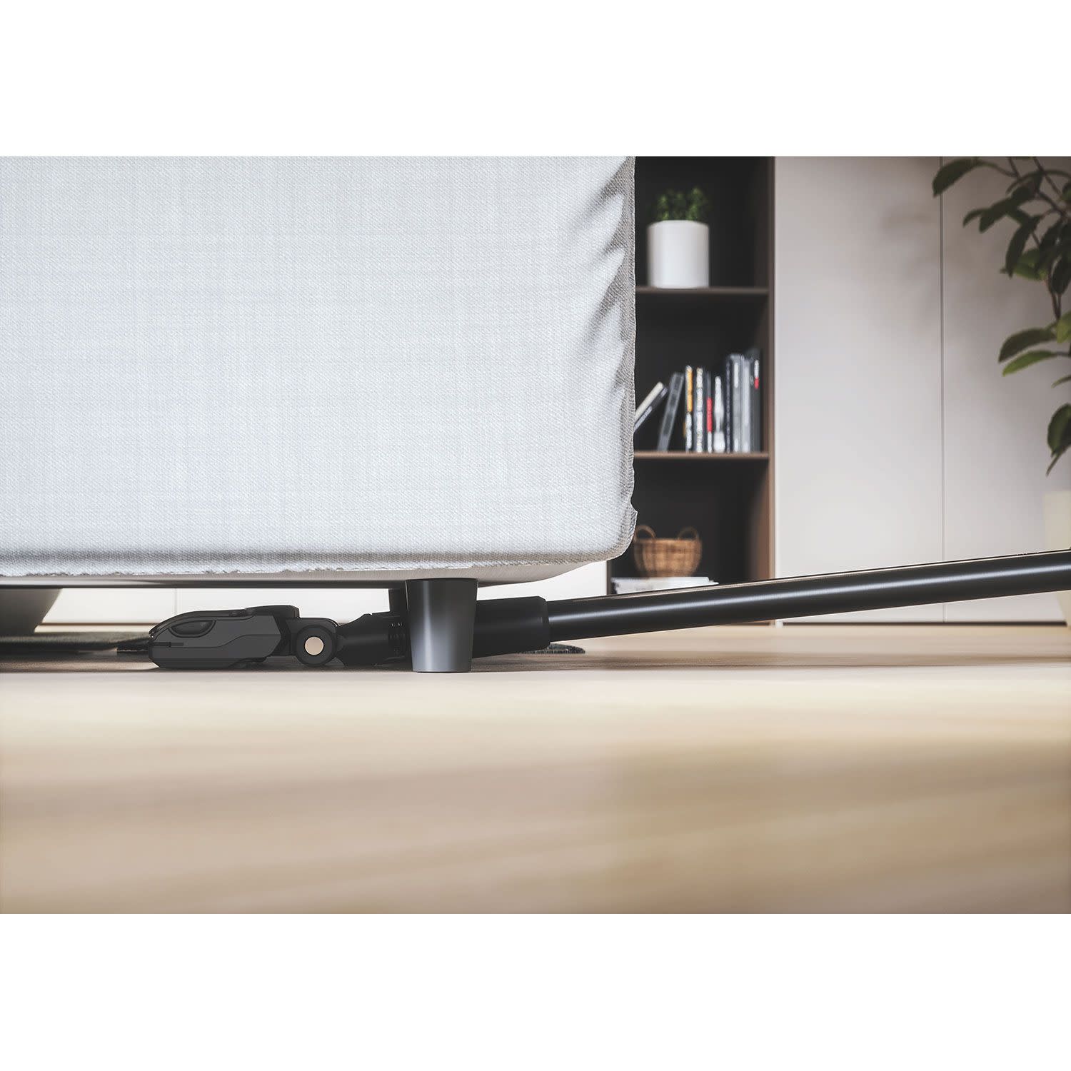 Η σκούπα έχει σχεδιαστεί ειδικά για να φτάνει σε κάθε γωνία με ευκολία χάρη στη δυνατότητα εκτέλεσης γωνίας περιστροφής 360°, διευκολύνοντας τον καθαρισμό και των πιο δυσπρόσιτων σημείων.