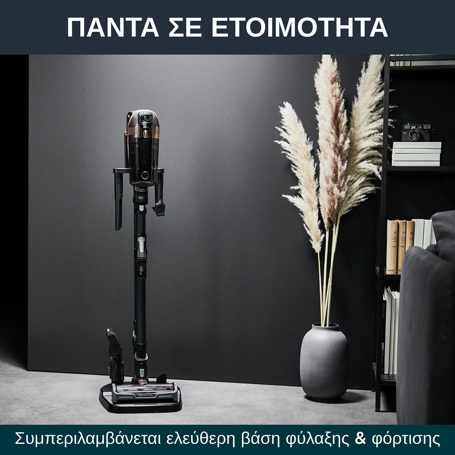Με τον αυτόνομο σταθμό φόρτισης, η σκούπα σου είναι πάντοτε φορτισμένη και τα εξαρτήματά της εύκολα προσβάσιμα, ενώ με τον σωλήνα καθαρίζεις μέχρι και το ταβάνι.