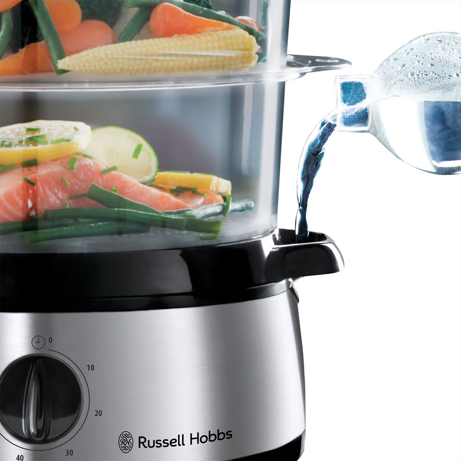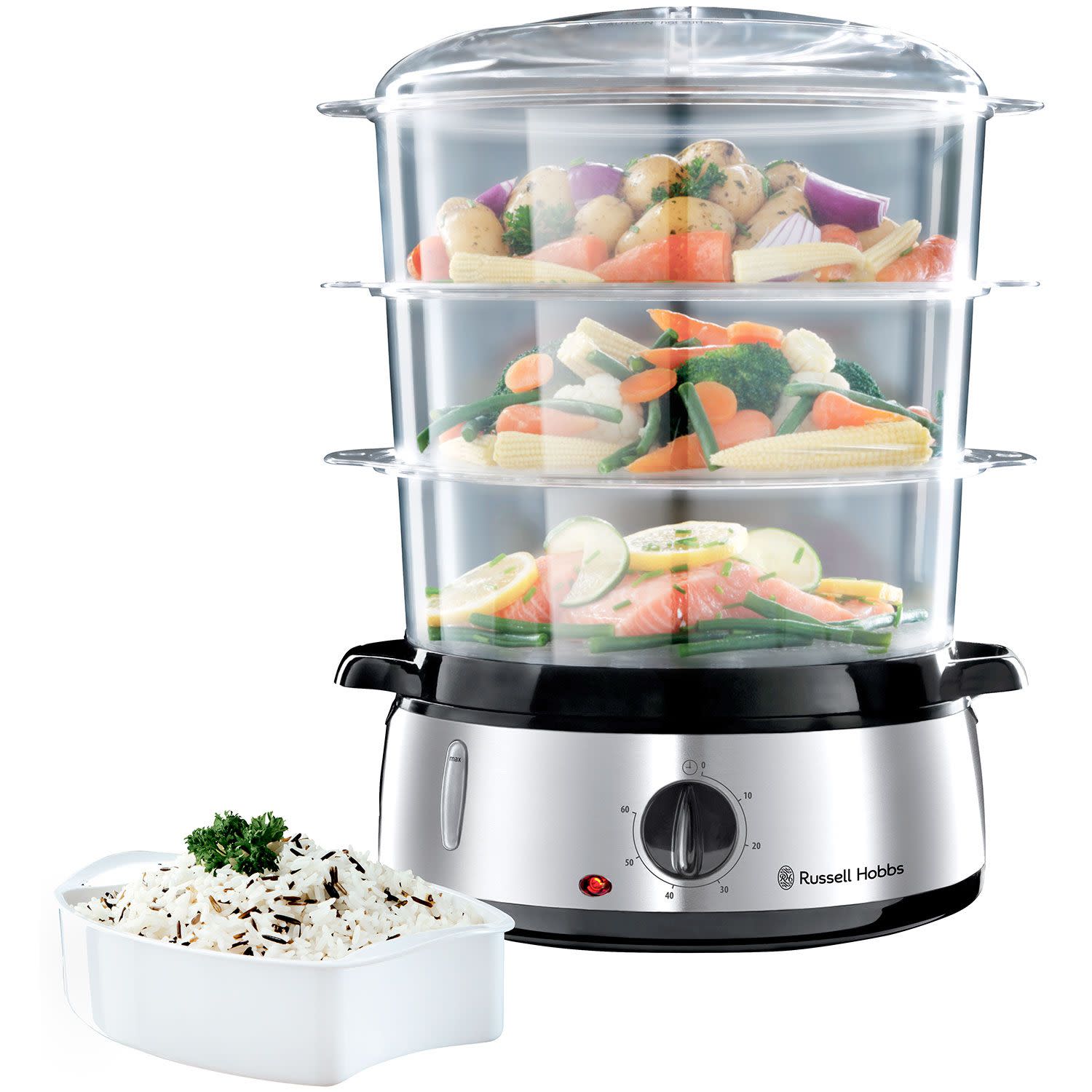 Ατμομάγειρας Russell Hobbs με ισχύ 800W, 3 επίπεδα μαγειρέματος και μπολ ρυζιού, για να ετοιμάζεις τα γεύματα σου γρήγορα και υγιεινά!