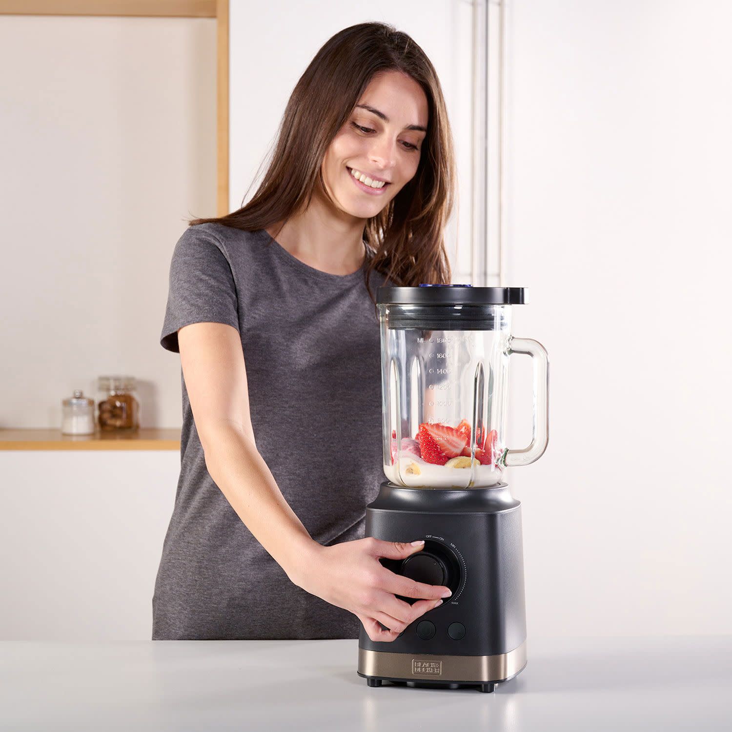 Black & Decker μπλέντερ με ισχύ 1800W, χωρητικότητα δοχείου 1.8Lt, 3 προγράμματα και λειτουργία Turbo, για να αναμειγνύεις ό,τι υλικό γράφει η συνταγή σου και να κάνεις τους ανάλογους πειραματισμούς.