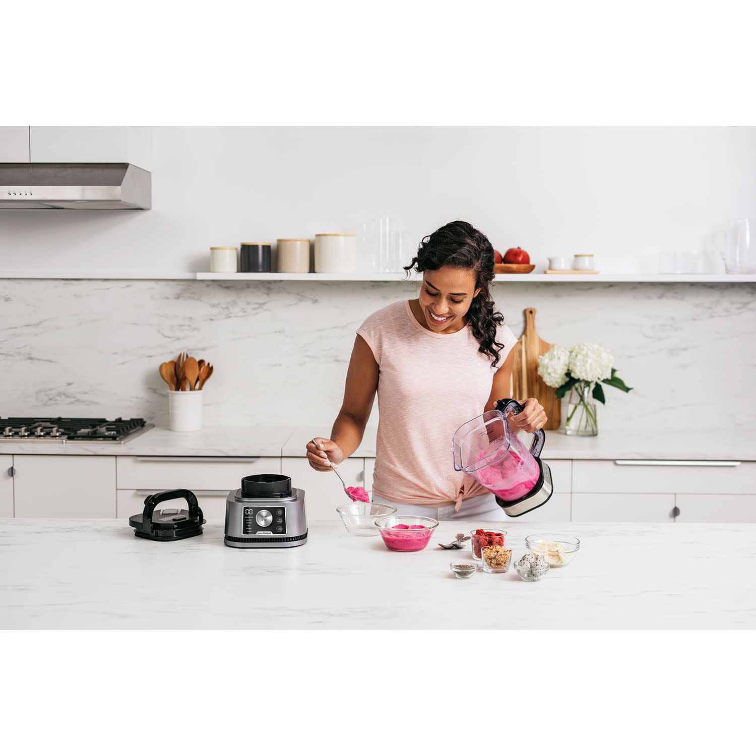 Το Ninja μπλέντερ σου διαθέτει 6 Auto-IQ® Programs: PowerMix, Blend, Crush, Chop, Mix and Puree (PowerMix, ανακάτεμα, θρυμματισμός, τεμάχισμα, ανάμειξη και πολτοποίηση). Το Auto-IQ κάνει τη δύσκολη δουλειά για εσένα, με τα προγράμματα που λειτουργούν με το πάτημα ενός κουμπιού και είναι ειδικά σχεδιασμένα για το δοχείο και το μπολ. Από ελαφρύ και βελούδινο σε πυκνό και αλειφόμενο – η επιλογή είναι δική σου.