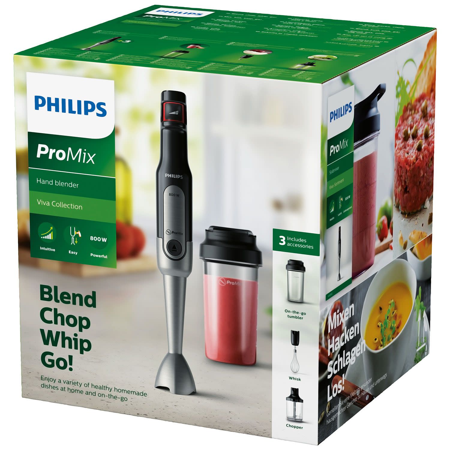Πέτυχε ακόμα και την πιο απαιτητική παρασκευή με το ραβδομπλέντερ Philips, ισχύος 800W. Διαθέτει λεπίδες από ανοξείδωτο ατσάλι, κουμπί turbo boost και τεχνολογία ProMix για σταδιακή αλλαγή ταχύτητας.