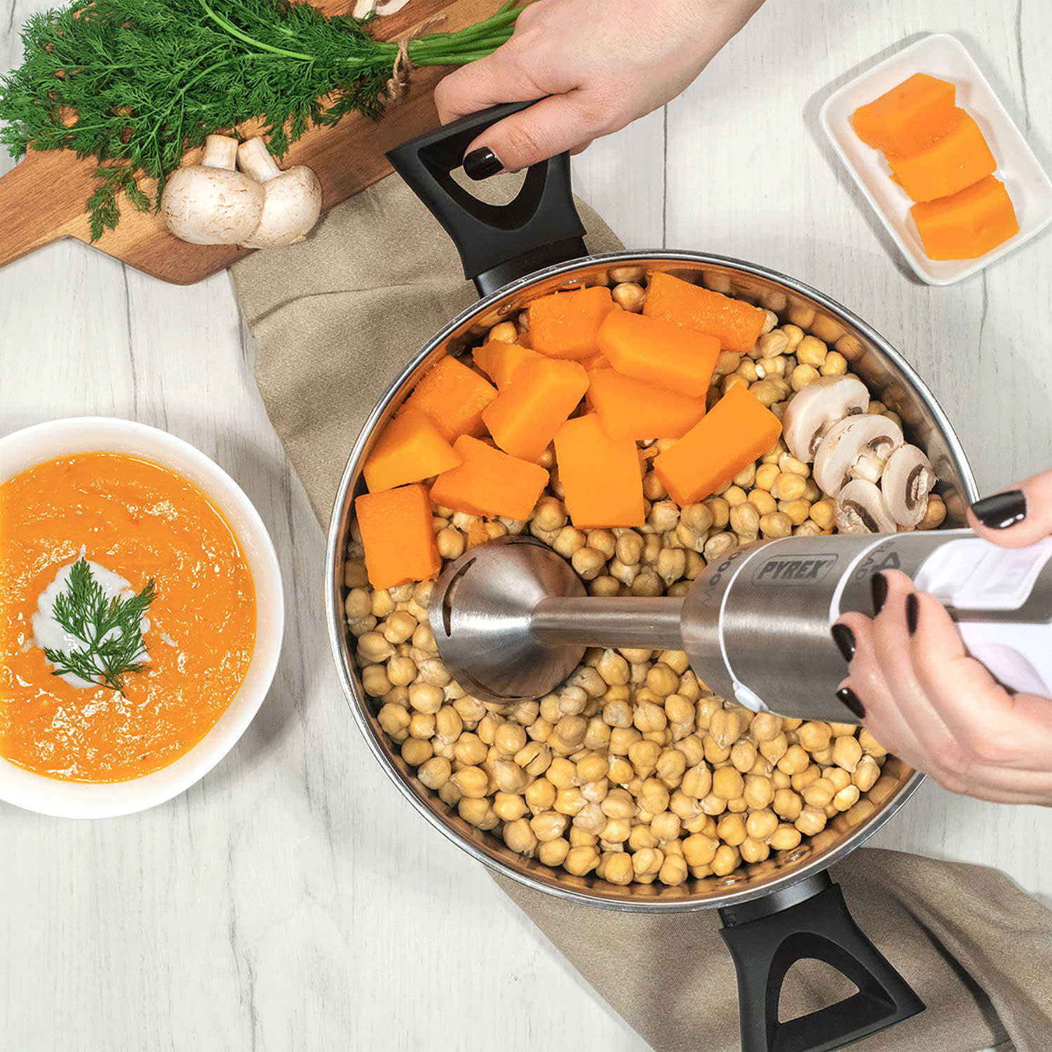 Ραβδομπλέντερ SB-1110 της Pyrex ισχύος 1000W, πολλαπλές ταχύτητες και επιλογή Turbo, για να εξασφαλίζεις αποτελεσματική άλεση τόσο σε σκληρά όσο και σε μαλακά υλικά και τέλεια υφή στο μίγμα σου!