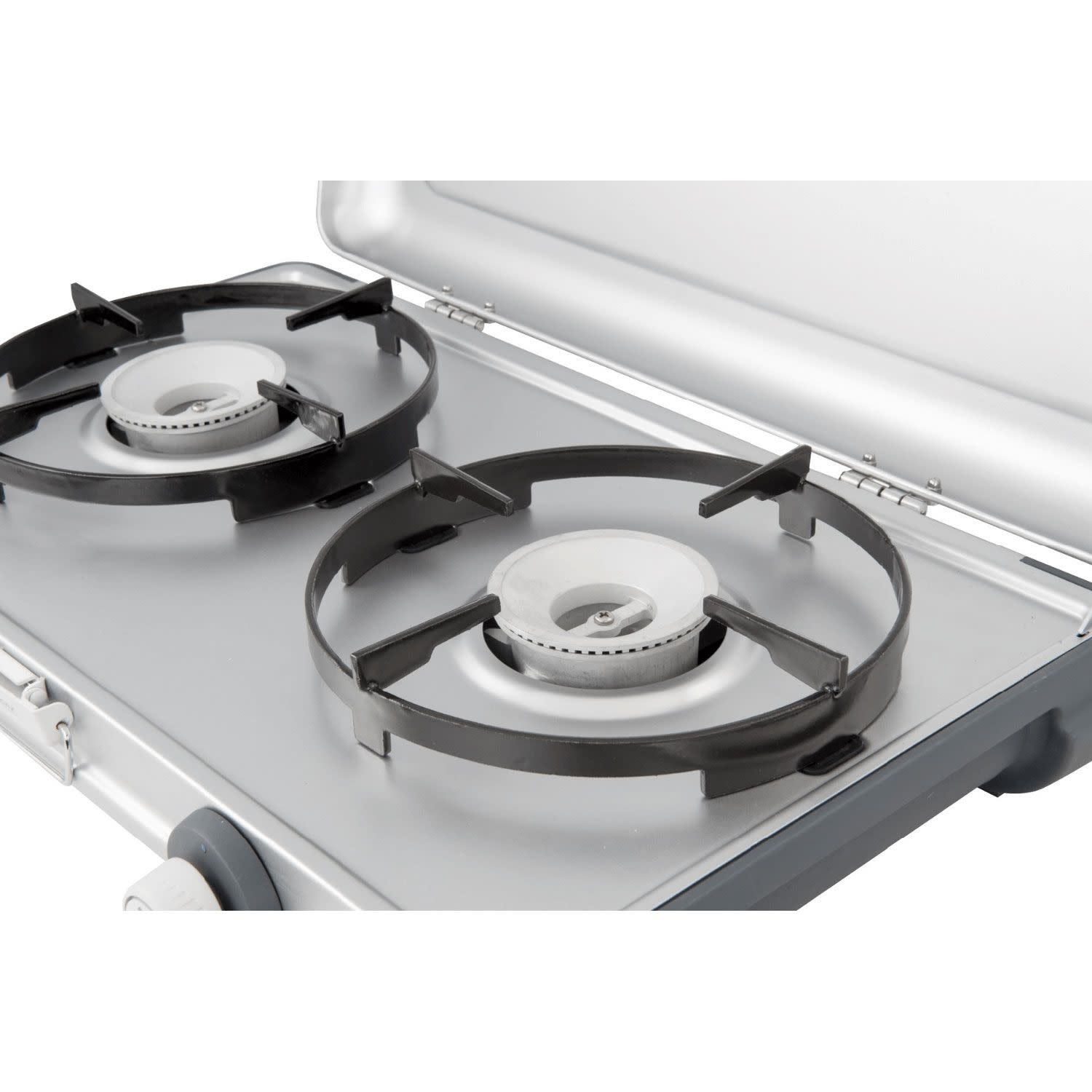 Η πρακτική αυτή συσκευή της Campingaz δεν αφήνει κανέναν παραπονεμένο και κυρίως… πεινασμένο, αφού μπορεί να υποστηρίξει δύο σκεύη μέγιστης διαμέτρου 24cm, για μαγειρικές δημιουργίες γεμάτες ποικιλία, αλλά και χορταστικής ποσότητας. Επιπλέον, έρχεται παρέα με ένα χαλύβδινο καπάκι το οποίο λειτουργεί και ως ανεμοθώρακας για καλύτερη απόδοση των εστιών.