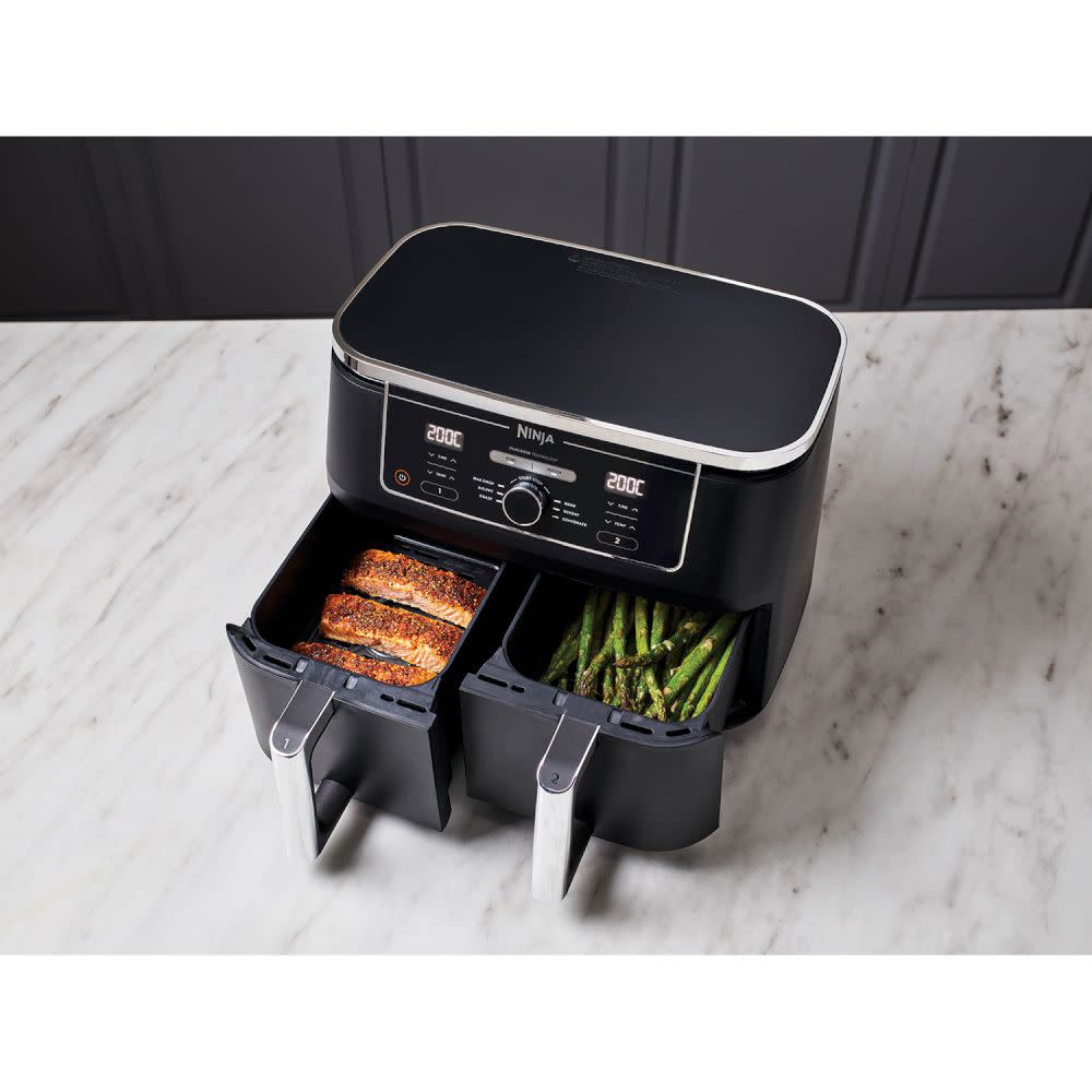 Air fryer της Ninja για να μαγειρέψεις υγιεινά τα αγαπημένα σου γεύματα. Έρχεται με 2470W, συνολική χωρητικότητα 9,5Lt για να μαγειρεύεις δύο φαγητά ταυτόχρονα και πλενόμενα μέρη για εύκολο καθαρισμό.