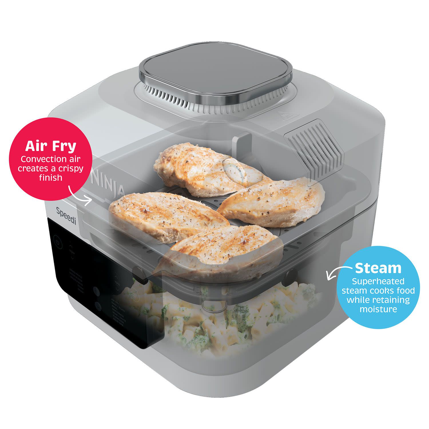 Η φριτέζα & πολυμάγειρας αέρος της Ninja, σου προσφέρει ολοκληρωμένη εμπειρία μαγειρέματος με 10 λειτουργίες: Speedi Γεύματα, Φριτέζα Αέρος με ατμό, Ψήσιμο στον ατμό, Αργό μαγείρεμα, Ψήσιμο και σοτάρισμα, Grill, Φριτέζα αέρος, Φούρνισμα και Ψήσιμο, Αφύγρανση και ατμός. Με λίγα λόγια, όλα όσα θες από την κουζίνα σου, σε μία μόνο συσκευή!