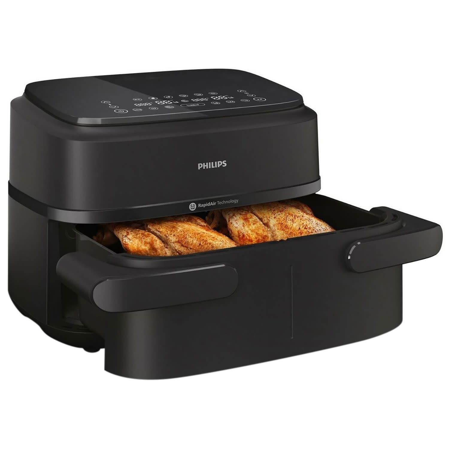 Airfryer της Philips με δύο κάδους και μεγάλη χωρητικότητα, για γεύματα που θα απολαύσει όλη η οικογένεια. Τηγανίζεις με ελάχιστο λάδι, ενώ η εφαρμογή HomeID έχει να σου προτείνει πολλές συνταγές!