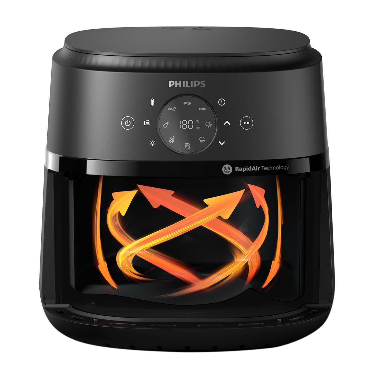 Το Airfryer της Philips διαθέτει τεχνολογία Rapid Air, που χάρη στη μοναδική σχεδίαση σε σχήμα «αστερία», (StarPlate) δημιουργεί τέλεια ροή αέρα, στροβιλίζει και μεταφέρει τα «καυτά» κύματα στον κάδο για να δημιουργείς πεντανόστιμα φαγητά, τραγανά εξωτερικά και τρυφερά στο εσωτερικό και μάλιστα, με την προσθήκη ελάχιστου έως και καθόλου λαδιού. Το μαγείρεμα με ζεστό αέρα προετοιμάζει τα αγαπημένα σου πιάτα με έως και 90% λιγότερα λιπαρά, χωρίς συμβιβασμούς στη γεύση!