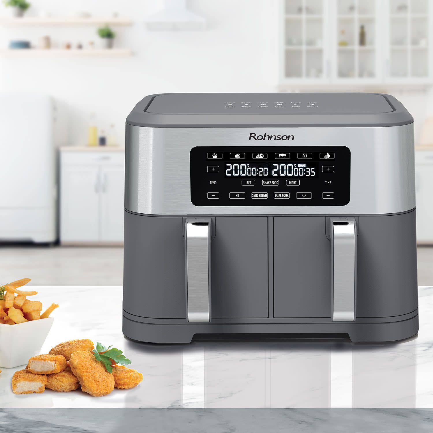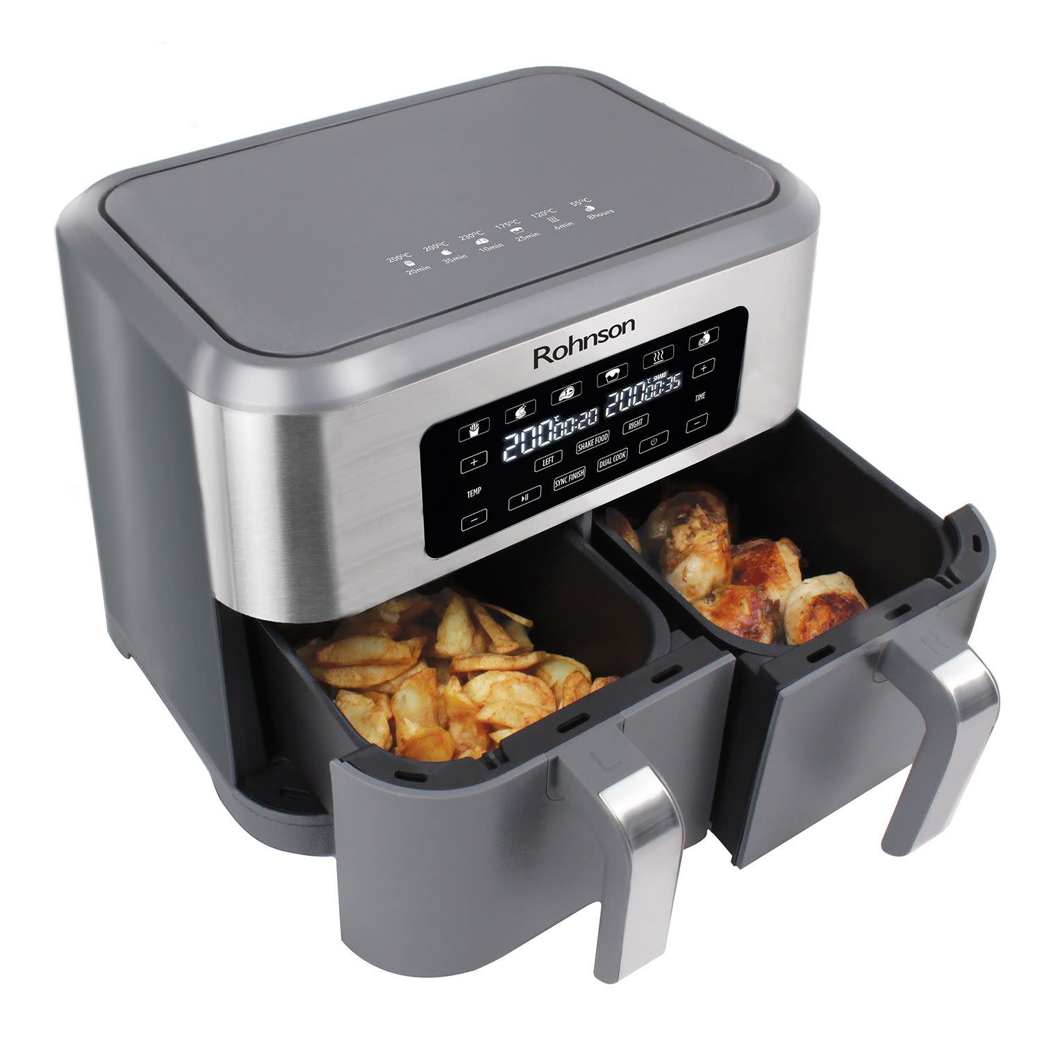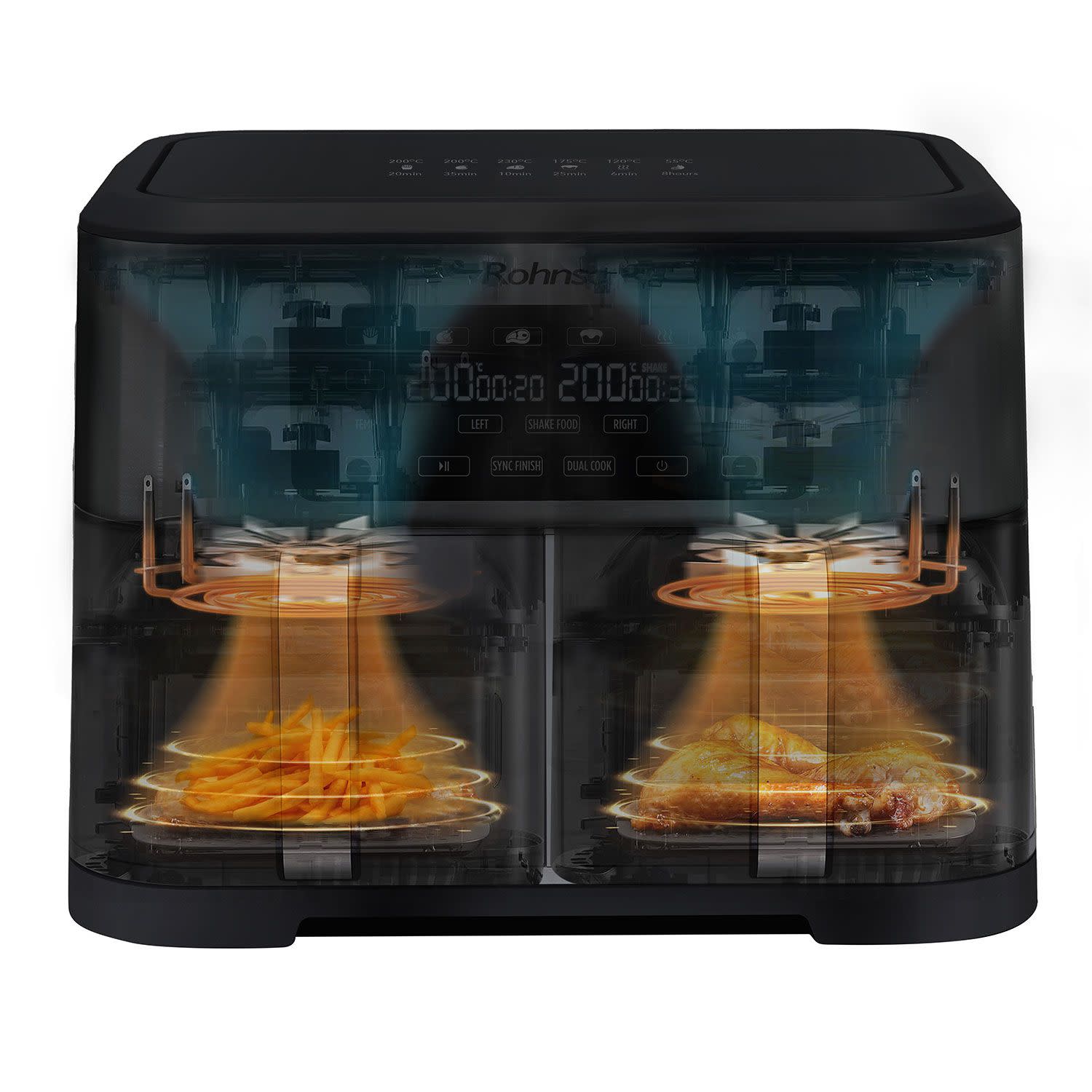 Rohnson Φριτέζα αέρα με ισχύ 1.400W και δύο ανεξάρτητους κάδους συνολικής χωρητικότητας 8.5Lt, για να μαγειρεύεις νόστιμα, υγιεινά φαγητά... γρήγορα και οικονομικά!