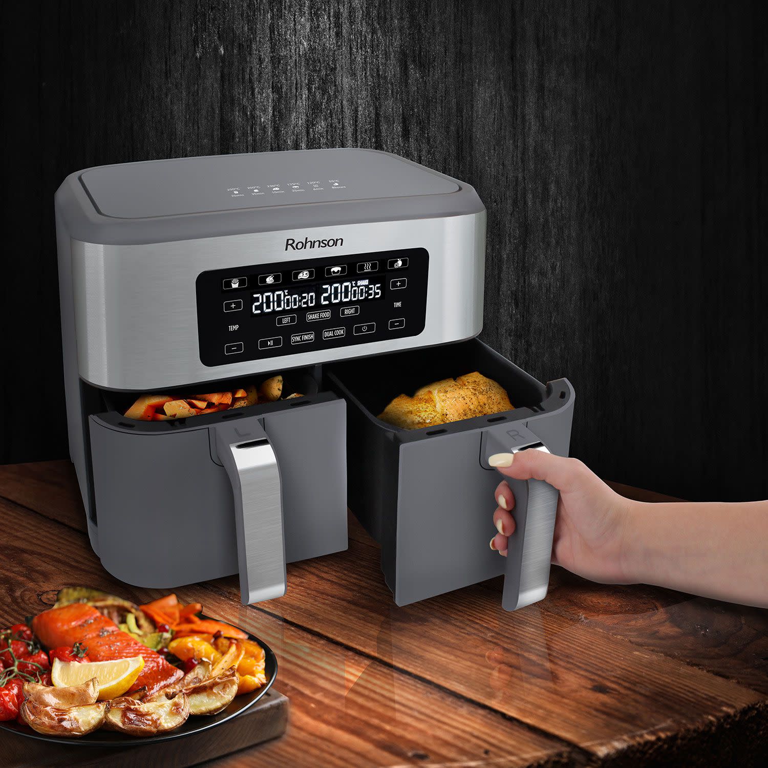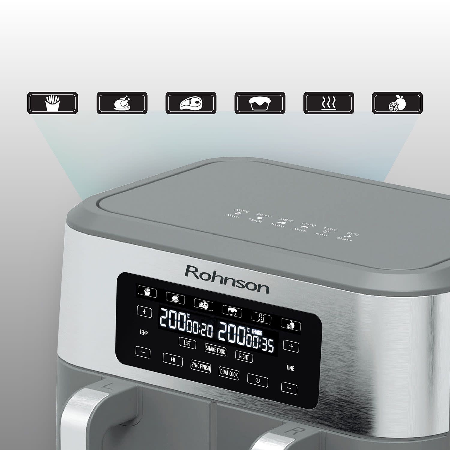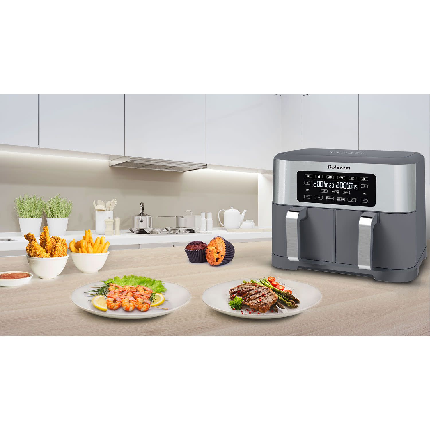 Rohnson Φριτέζα αέρα με ισχύ 1.400W και δύο ανεξάρτητους κάδους συνολικής χωρητικότητας 8.5Lt, για να μαγειρεύεις νόστιμα, υγιεινά φαγητά... γρήγορα και οικονομικά!