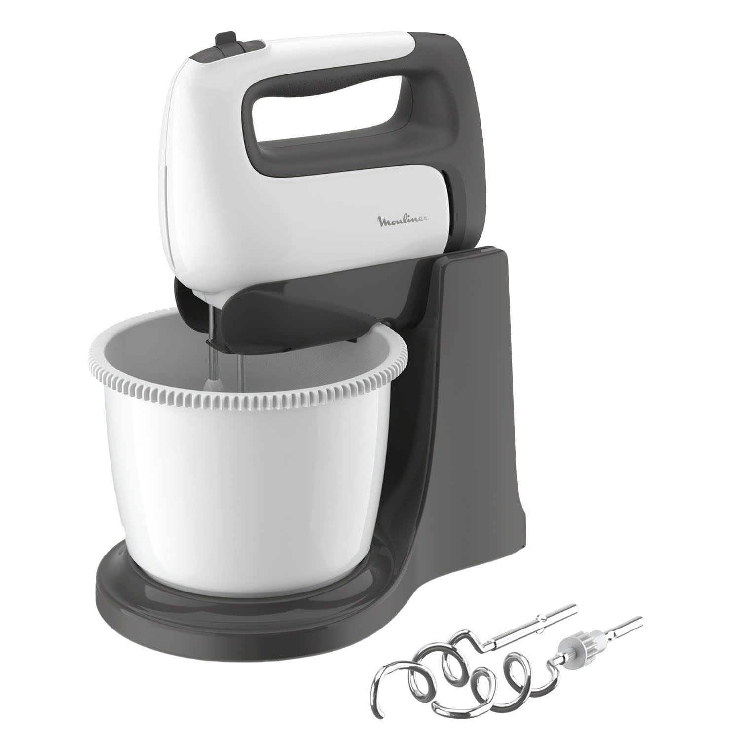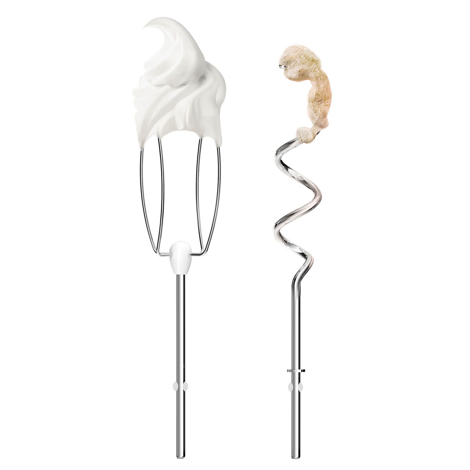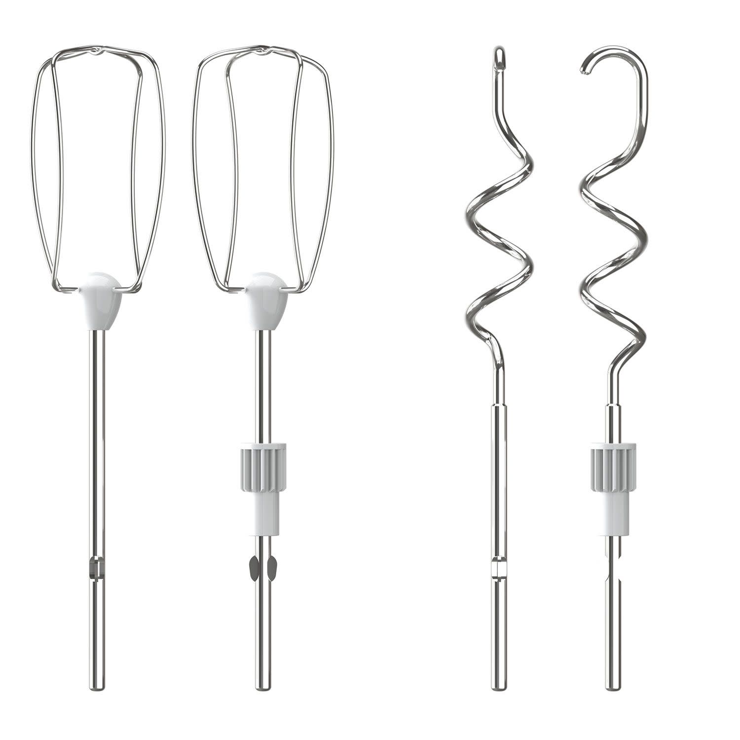 Μαζί με το μίξερ στη συσκευασία θα βρεις: Αναδευτήρες από ανοξείδωτο ατσάλι – κτάλληλοι για ανακάτεμα, κτύπημα και ανάμιξη για τέλεια ασπράδια αυγών, σαντιγί, ζύμη κέικ, μαγιονέζα και άλλα ελαφριά παρασκευάσματα και γάντζους ζύμης επίσης από ανοξείδωτο ατσάλι – κατάλληλοι για στιβαρά, υψηλής απόδοσης αποτελέσματα για βαριές ζύμες και ζυμάρια.