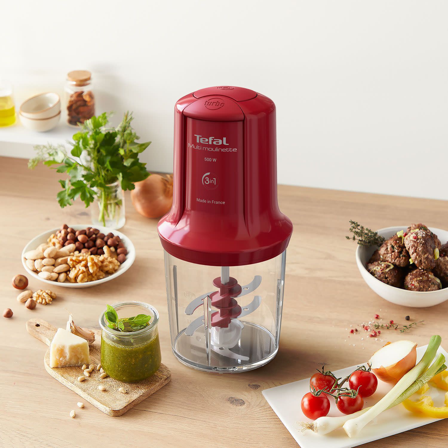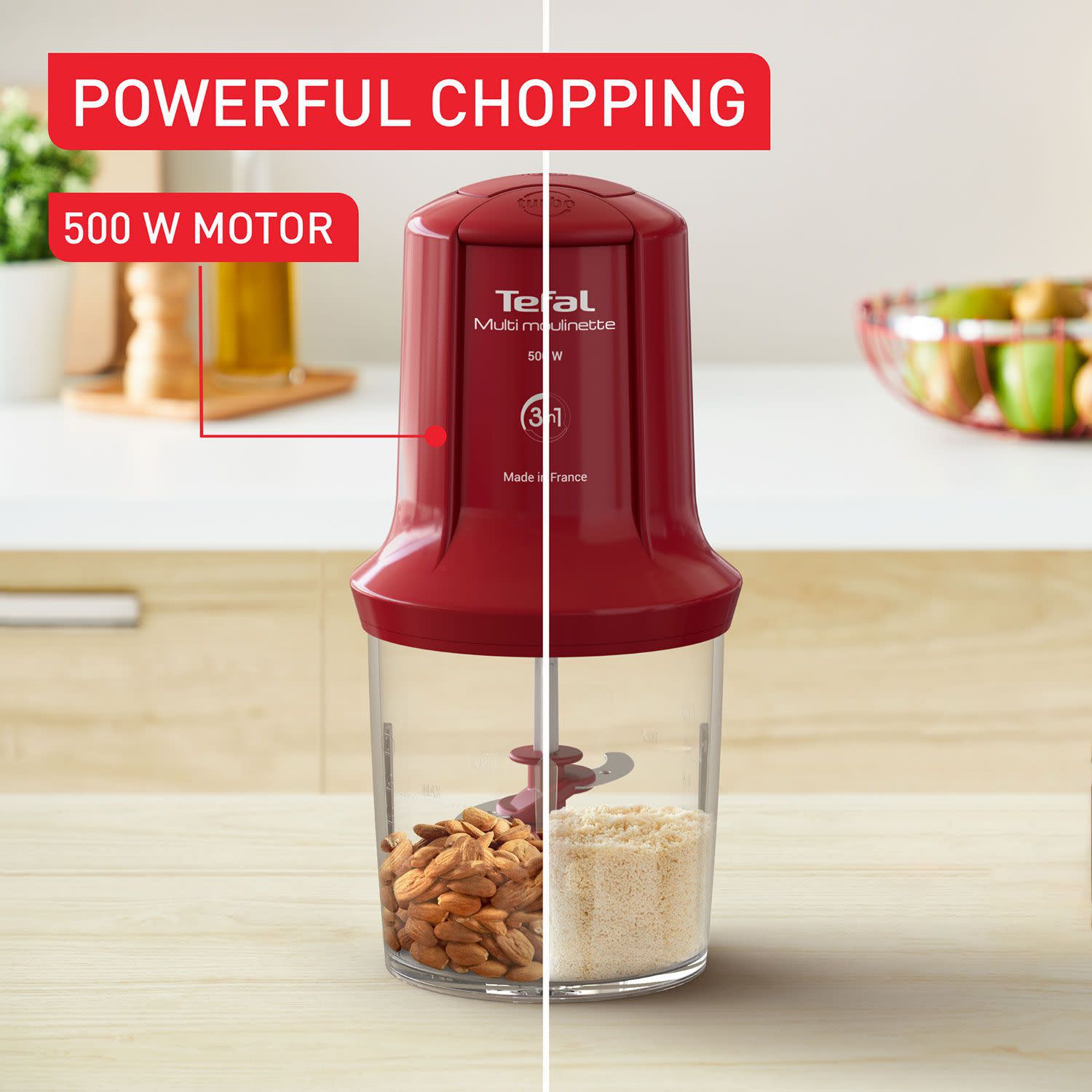 Ο πολυκόπτης Multi Moulinette της Tefal είναι εξοπλισμένος με 2 ταχύτητες, έναν ισχυρό κινητήρα 500W και 6 λεπίδες από ανοξείδωτο ατσάλι, για να εξασφαλίζει τέλεια και γρήγορα αποτελέσματα σε κάθε συνταγή. Ο βολικός σχεδιασμός σού επιτρέπει να εισάγεις και να μετράς ξηρά συστατικά έως 300gr απευθείας στο μπολ του, ενώ μπορείς επίσης και να χειριστείς μείγματα έως 500ml. Το Multi Moulinette είναι εύκολο στη χρήση, στην συναρμολόγηση και στον καθαρισμό—ιδανικό για καθημερινό μαγείρεμα και μέγιστη ευκολία.
