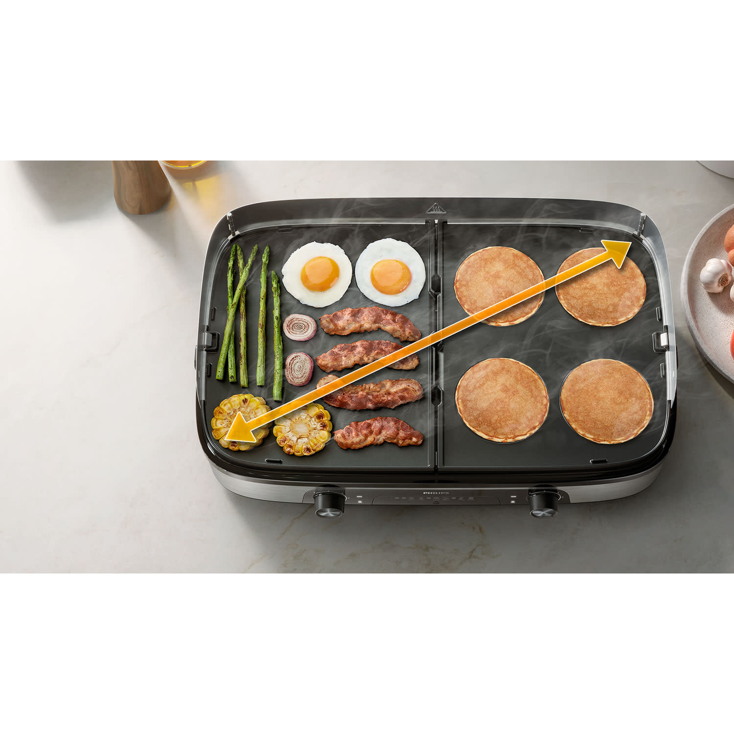 Οι 2 περιοχές ψησίματος σού επιτρέπουν να ρυθμίζεις τη θερμοκρασία ανεξάρτητα και να προετοιμάζεις διαφορετικά πιάτα ταυτόχρονα.