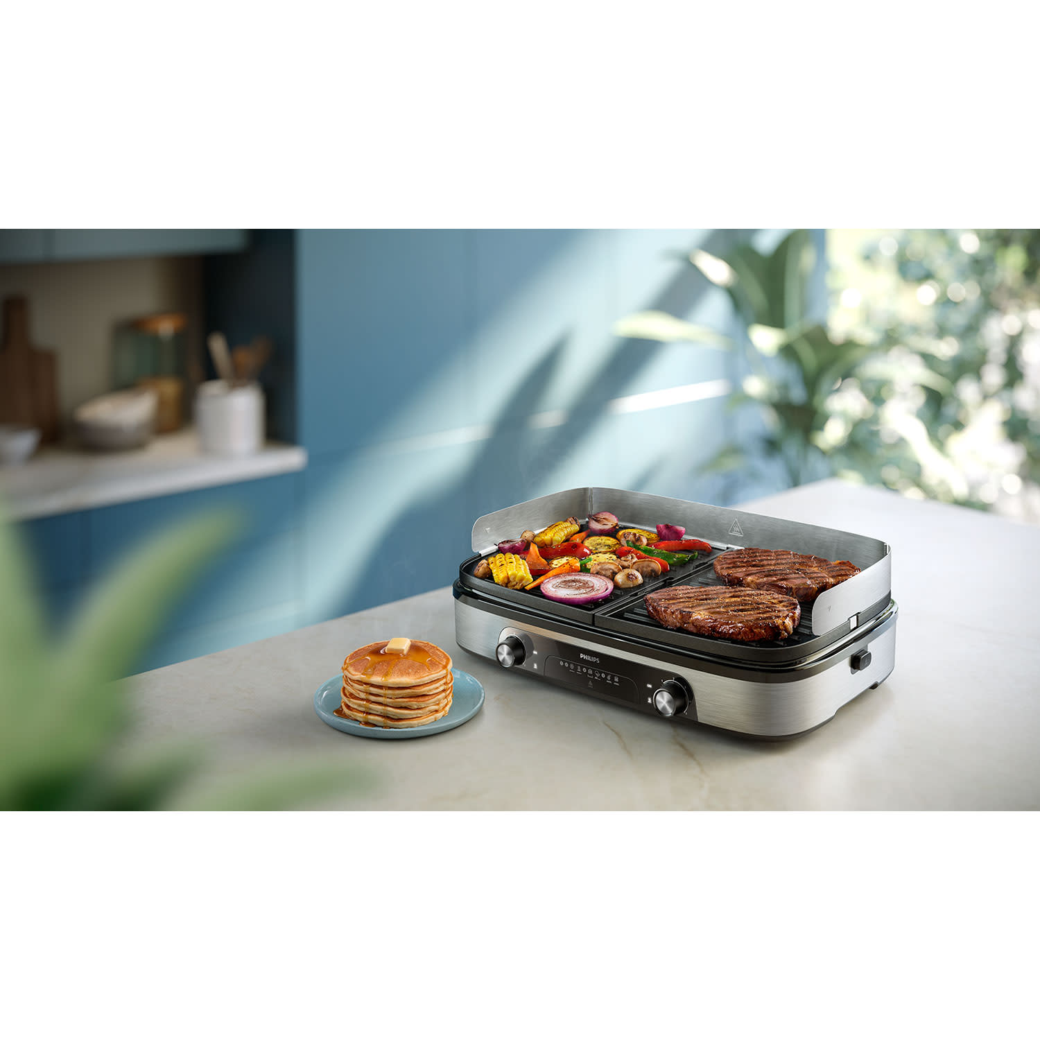 Οι αναστρέψιμες πλάκες της γκριλλιέρας σού δίνουν την ελευθερία να ψήνεις είτε στη σχάρα είτε σε επίπεδη επιφάνεια. Από μπιφτέκια και φιλετάκια, μέχρι αυγά και pancakes!
