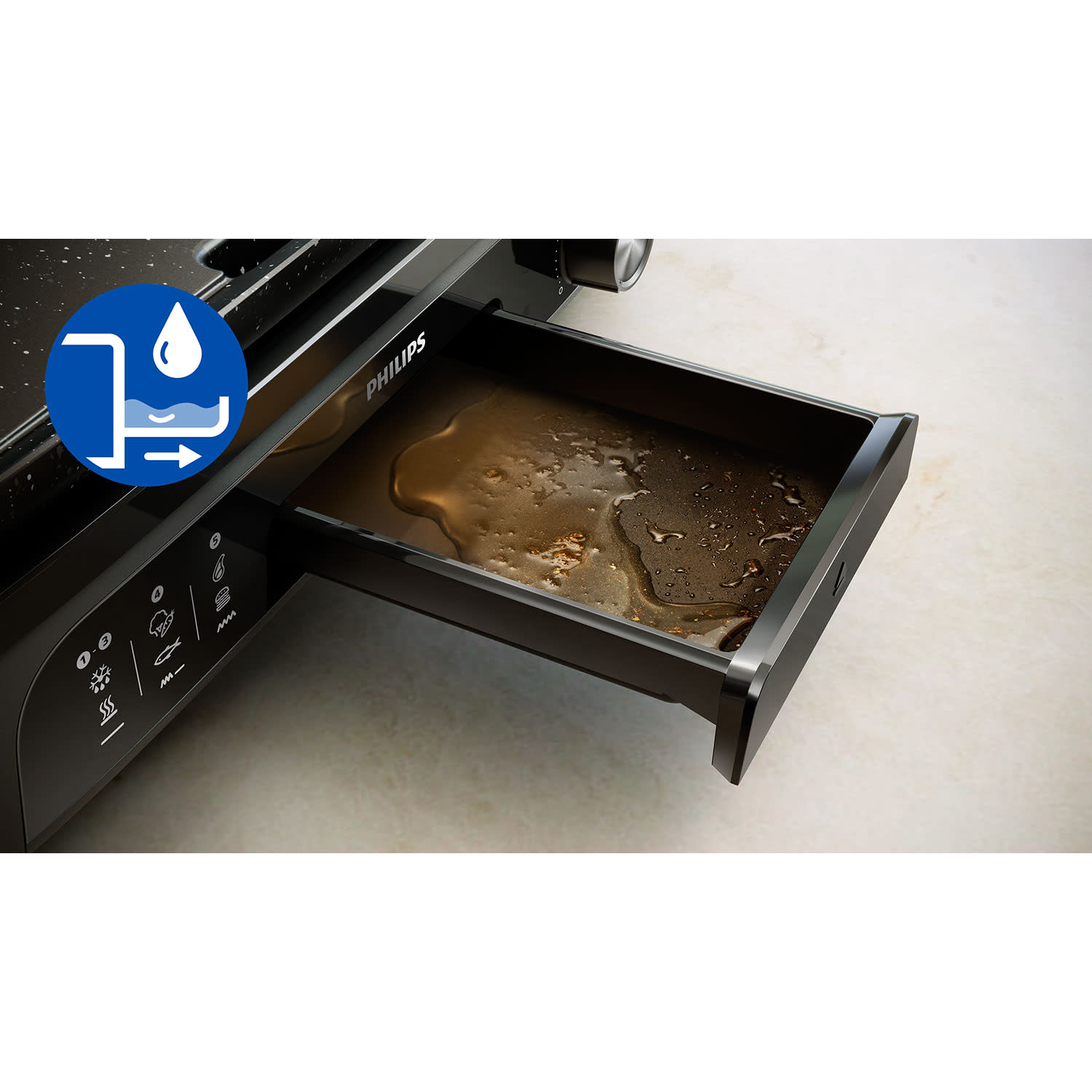 Κανείς δε θέλει περιττά λίπη στο φαγητό ή παιδέματα στο καθάρισμα… και αυτή η γκριλιέρα το ξέρει καλά! Ο αφαιρούμενος δίσκος συλλογής λίπους μαζεύει ό,τι περισσεύει την ώρα που ψήνεις, κάνοντας το καθάρισμα παιχνιδάκι! Έτσι, απολαμβάνεις πιο ελαφριά γεύματα και μία πολύ καλή εμπειρία μαγειρέματος. Τραβώντας απλώς το αποσπώμενο δισκάκι, ξεμπερδεύεις σε δευτερόλεπτα. Γρήγορα, πρακτικά και παντακάθαρα!
