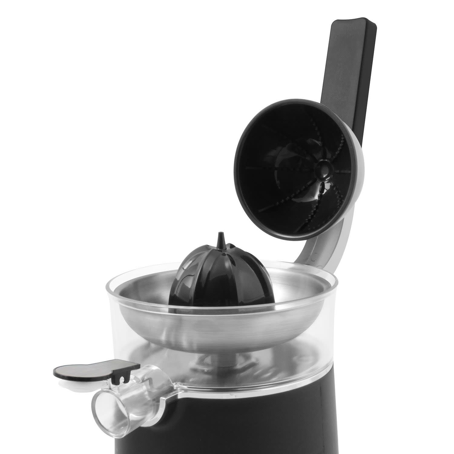 Πλέον, δε χρειάζεται να κουράζεις το χέρι σου με τα διαρκή στριφογυρίσματα του φρούτου πάνω στον κώνο, αφού με τον εργονομικό βραχίονα για εύκολη πίεση, η στύψη γίνεται με μια απλή κίνηση.