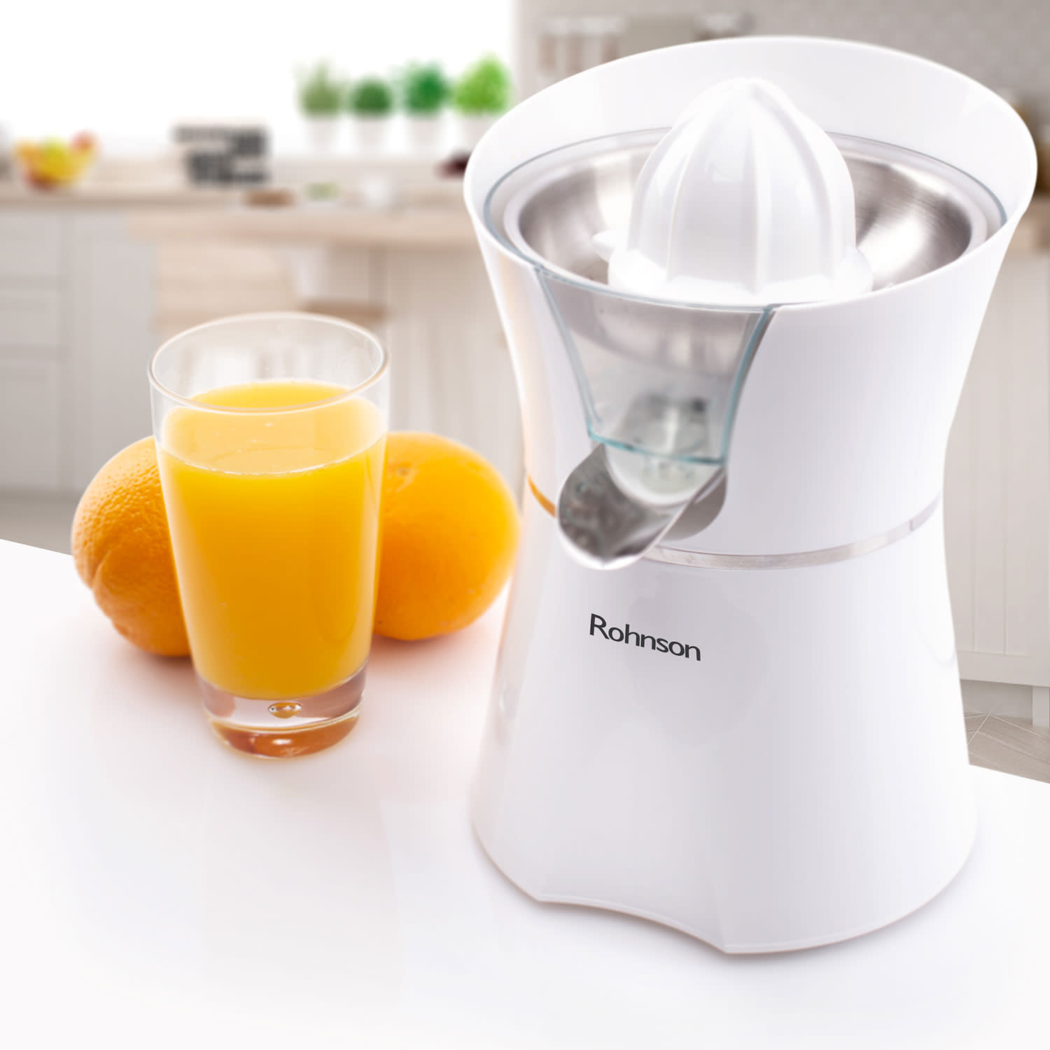 Λεμονοστίφτης R-409 της Rohnson με ισχύ 600W για να μπορεί να βγάζει το χυμό κάθε εσπεριδοειδούς άμεσα και εύκολα.