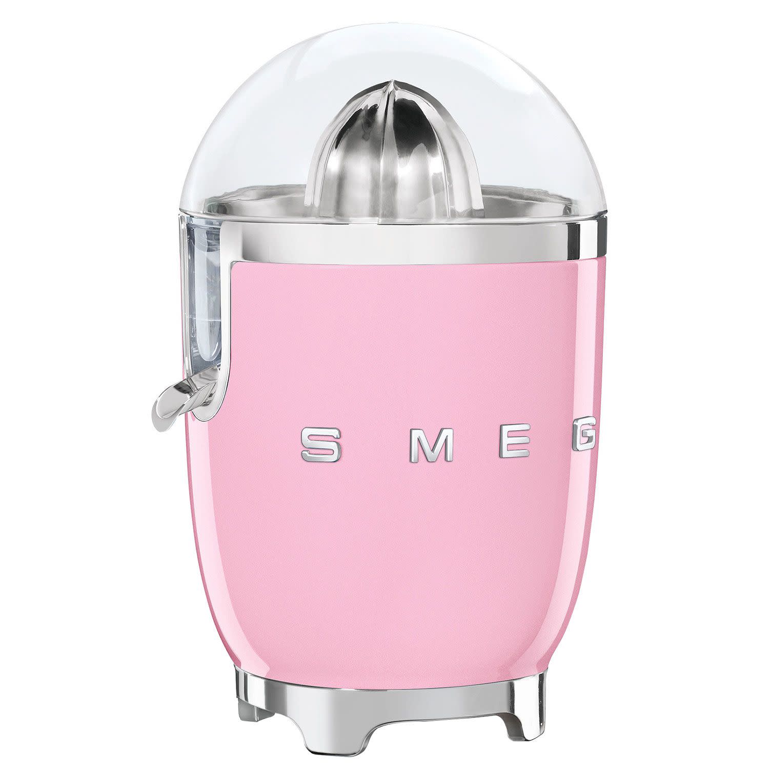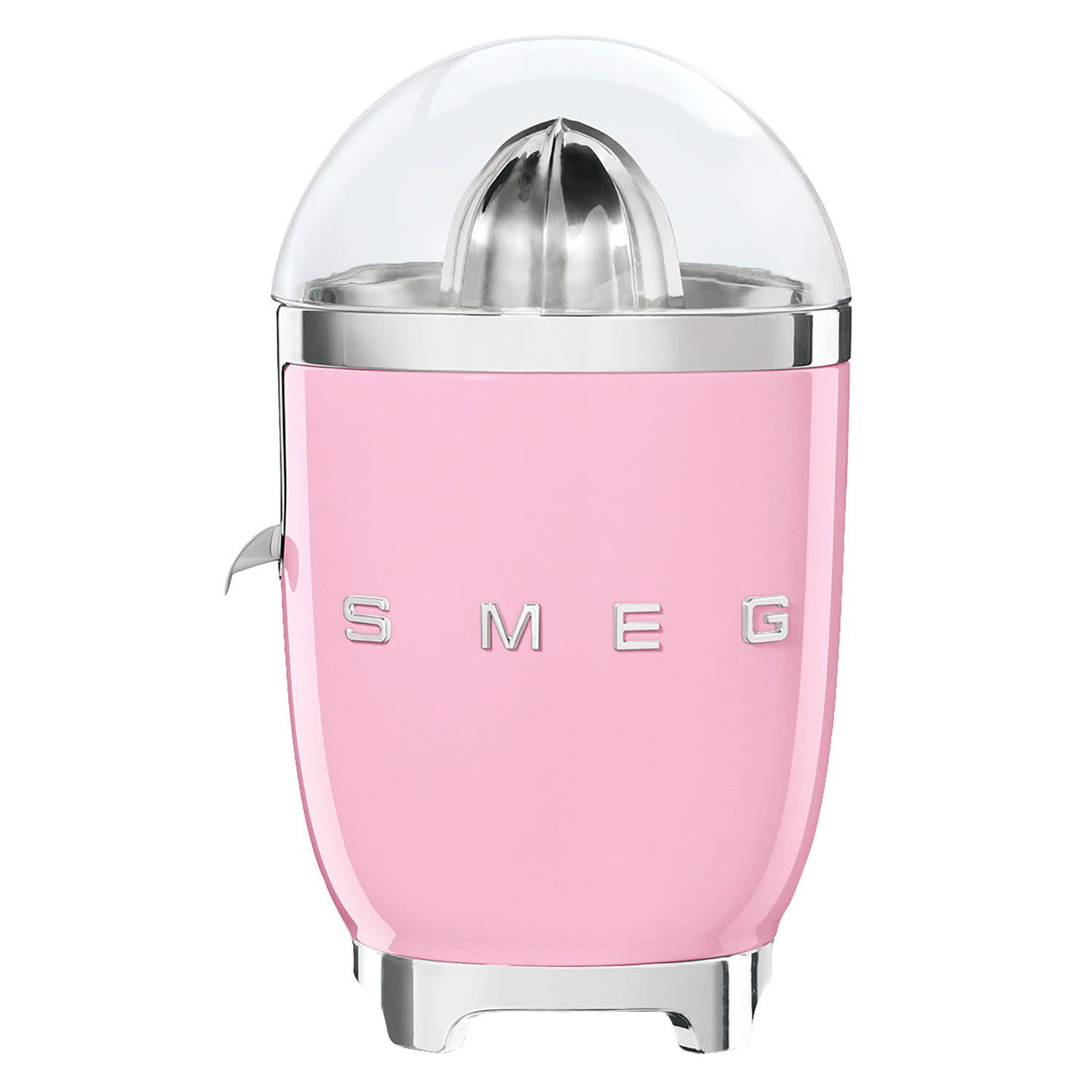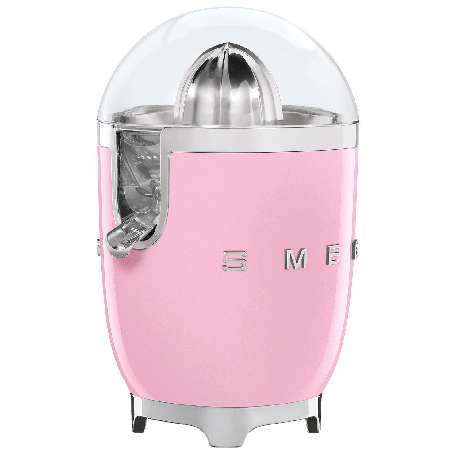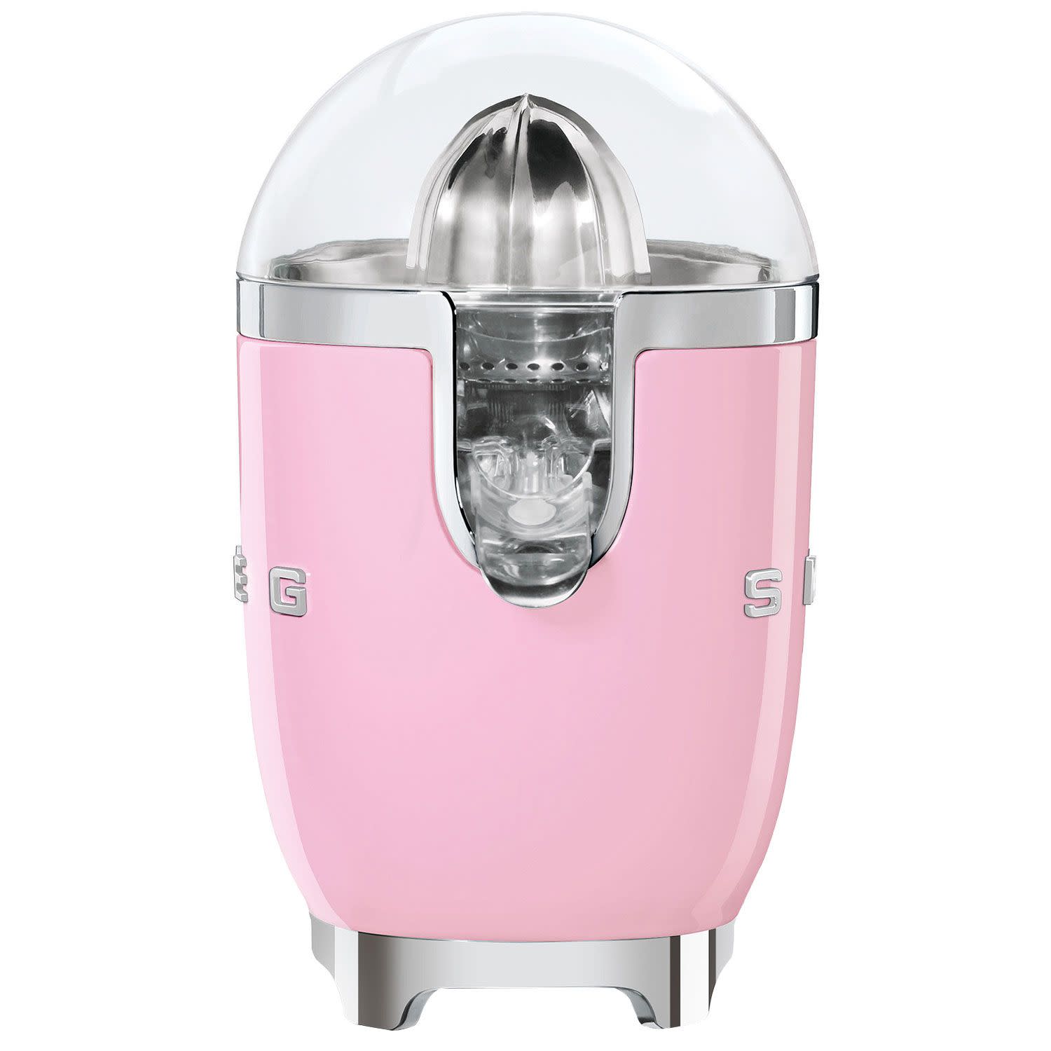 Ροζ στίφτης Smeg CJF11PKEU με ισχύ 70W για γρήγορο στύψιμο! Η κεφαλή στυψίματος και το σουρωτήρι είναι φτιαγμένα από ανοξείδωτο χάλυβα για να αντέχουν στο χρόνο, ενώ διαθέτει λειτουργία drip – stop για να μην στάξει ούτε σταγόνα εκτός ποτηριού!