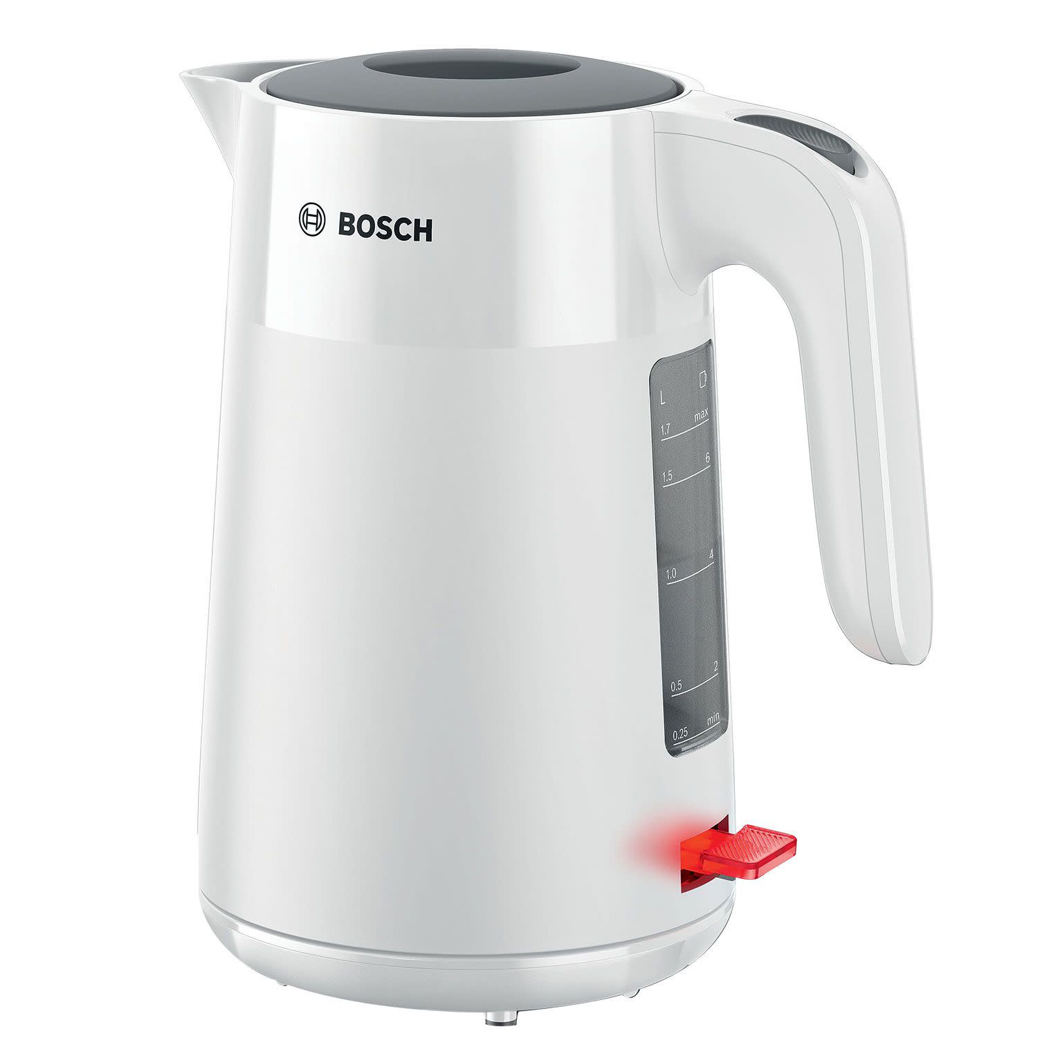 Βραστήρας TWK2M161 της Bosch με χωρητικότητα 1.7Lt, περιστρεφόμενη βάση 360° και ένδειξη ποσότητας, για να μην ξεμείνεις ποτέ από νερό! Με πρακτικό τύλιγμα καλωδίου, για εύκολη αποθήκευση και αυτόματη απενεργοποίηση που σού παρέχει απόλυτη ασφάλεια, θα γίνει το δεξί σου χέρι στην κουζίνα. Επιπλέον, απόλαυσε ποιοτικό νερό χωρίς άλατα, χάρη στο αφαιρούμενο φίλτρο αλάτων! Βραστό νερό, εύκολα και με ασφάλεια!